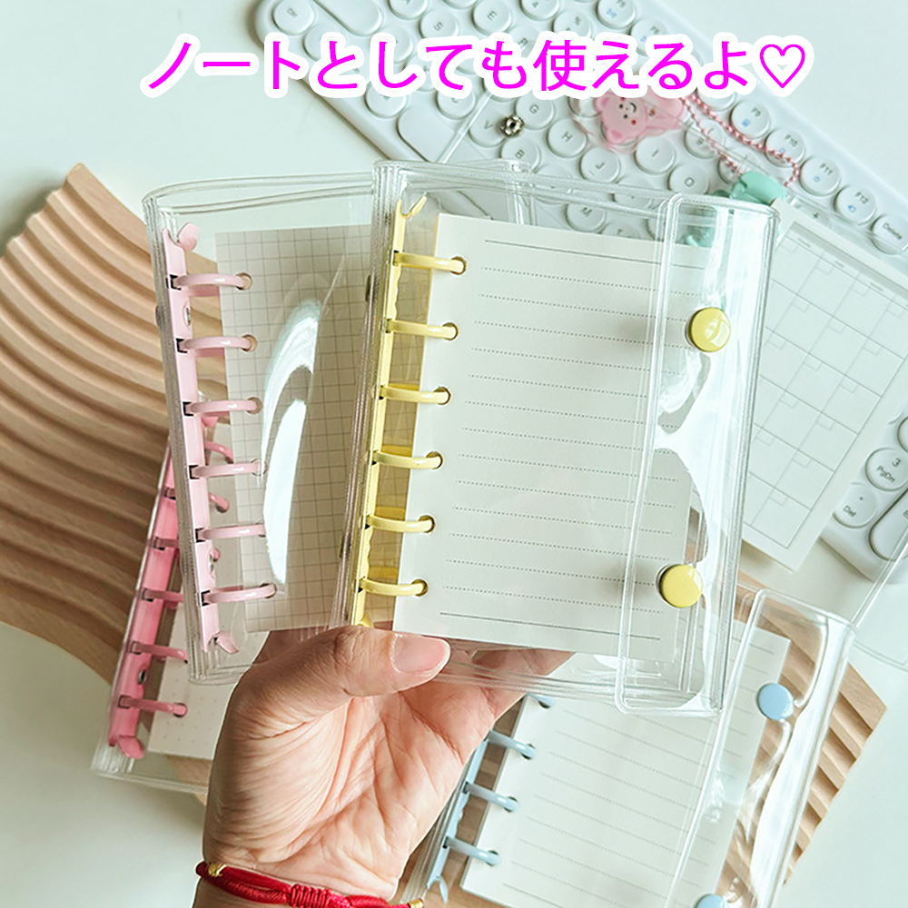【セット内容】 ・A7バインダーx1個 ・透明リフィルx20枚 ・キーホルダーシール帳x1個 (1個:リフィル8枚入り)