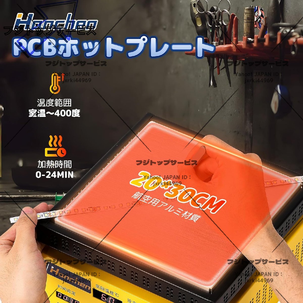 恒温ホットプレート 20*20cm 110V電源コード デュアル温度表示 室温~400℃ タイマー付 高精度1% 予熱器プラットフォーム 携帯修理/溶接/