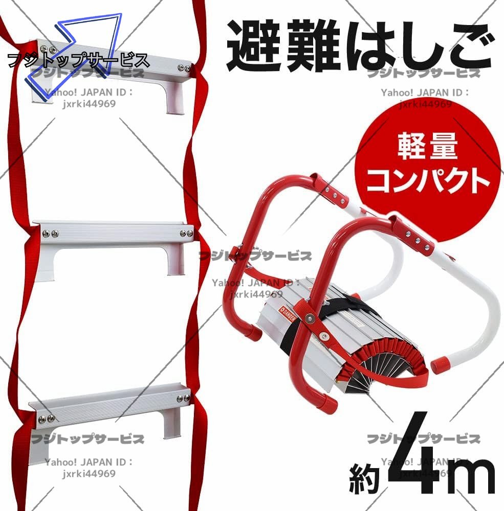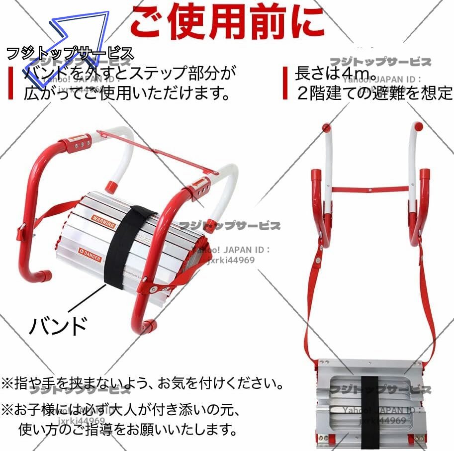 防災はしご 避難用はしご 4M 2階用 緊急時 アルミステップ ベランダ 軽量4.5kg コンパクト収納 折りたたみラダー 引っ掛けはしご (4m / 2階