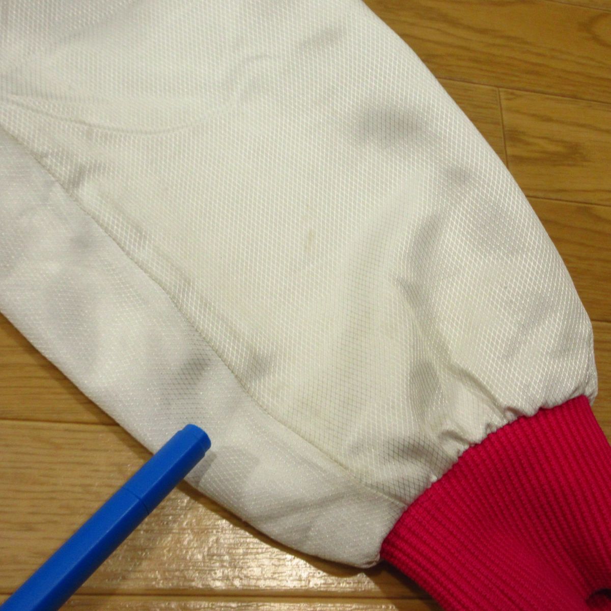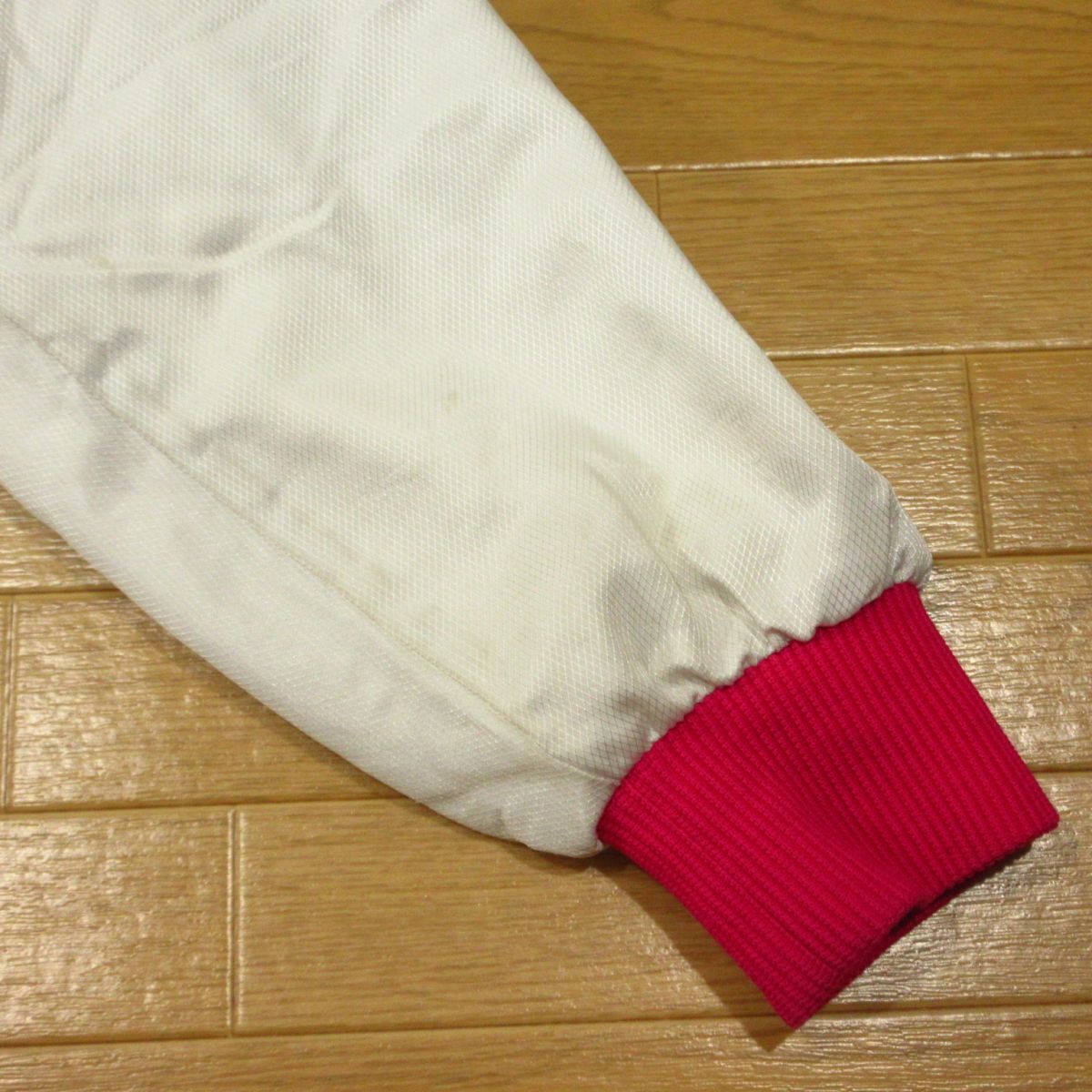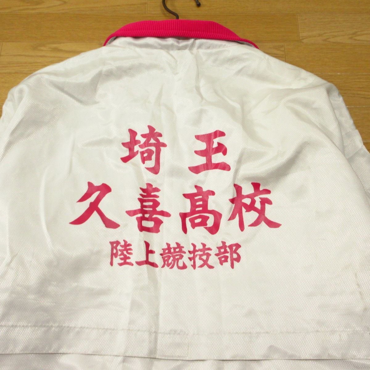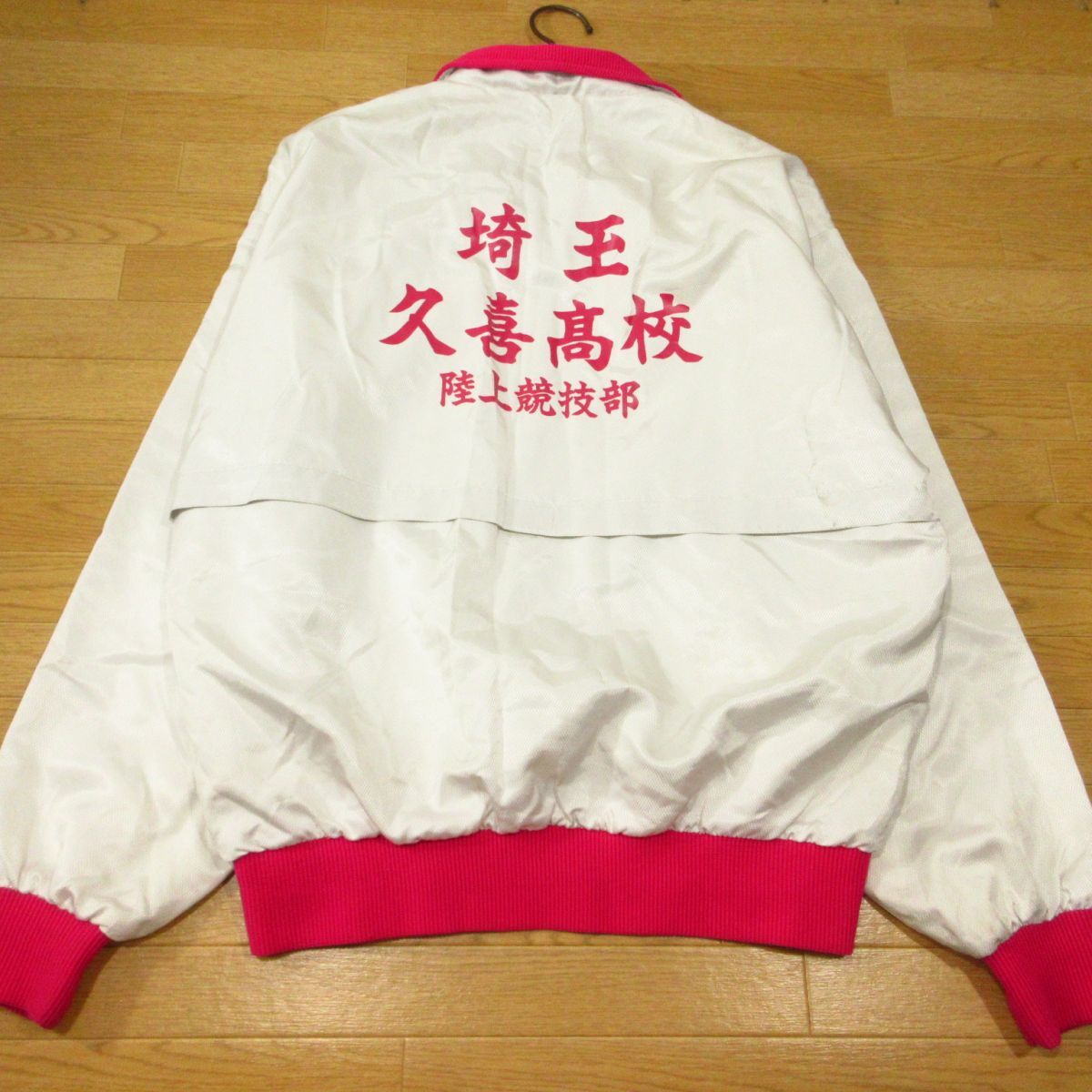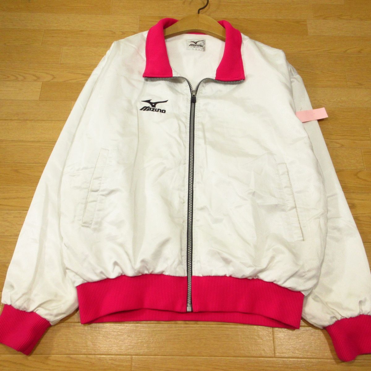 ◎使用少なめ!埼玉 久喜高校 女子 陸上 MIZUNO ミズノ 裏起毛 ナイロンジャケット ユニフォーム 支給品 実使用 白xピンク Mサイズ◆AA5501