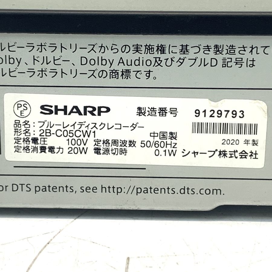 SHARP 2B-C05CW1 AQUOS 2020年製 シャープ アクオス ブルーレイディスクレコーダー B-CAS付 ※起動不良品 〆11●ジャンク品【福岡】