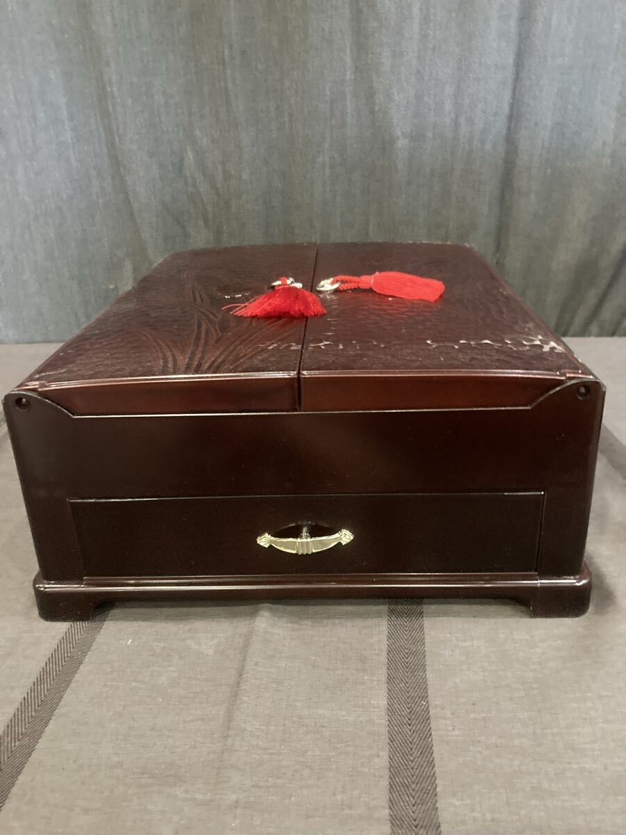 90 鎌倉彫 小物入れ 収納箱 伝統工芸 彫刻 木製 引き出し付き レトロ コレクション
