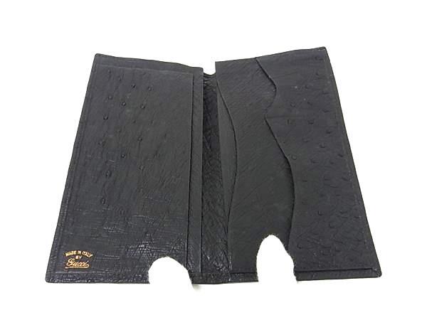 1円 ■極上■本物■美品■ GUCCI オールドグッチ ヴィンテージ オーストリッチ 二つ折り 長財布 ウォレット 札入れ ブラック系 BN6590
