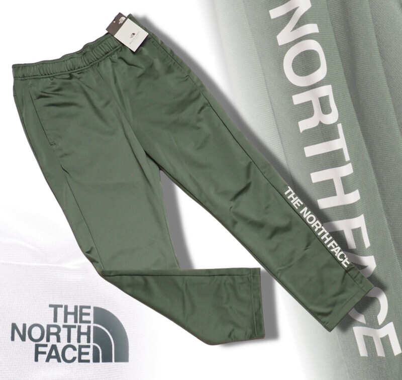新品正規 ノースフェイス ホワイトレーベル 海外限定 ビッグロゴ 光沢天竺 ALBANI ジャージパンツW85(L)カーキ(KHA)