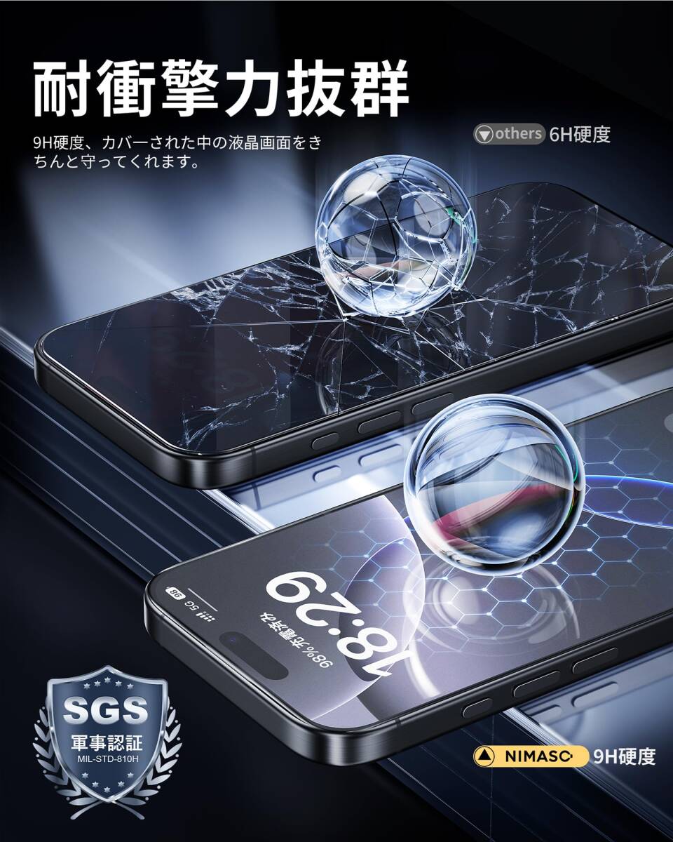 「反射低減・アンチグレア機能」NIMASO独自の反射防止コーティングの加工で、いPhone 16 Proスクリーンへの太陽光や蛍光灯などの反射を抑え、長時間スマホの画面を見ていても眼が疲れにくいです。視認性を向上させて画面を見えやすくすることで、目の負担を軽減でき、効果的に目を保護します。