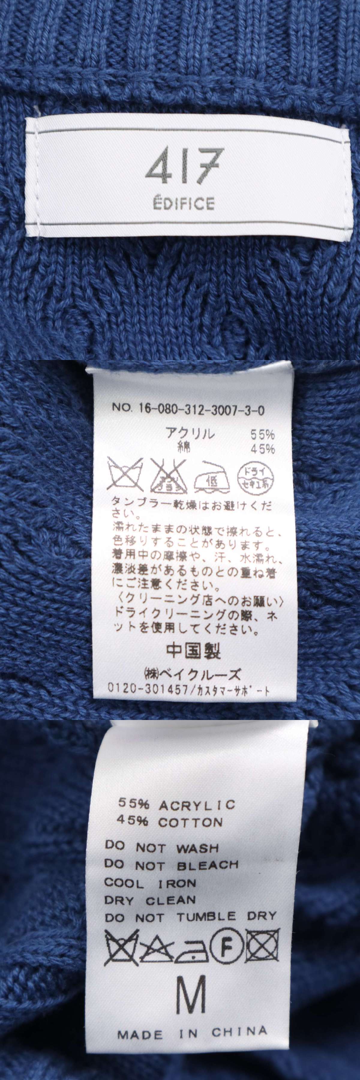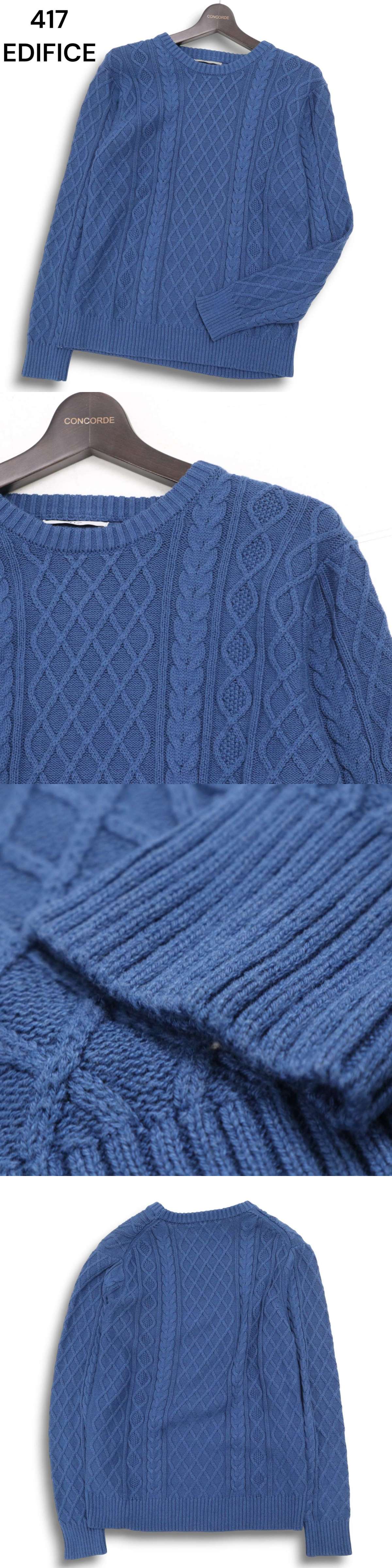 417 EDIFICE エディフィス 秋冬 アラン編み★ クルーネック セーター ニット Sz.M メンズ