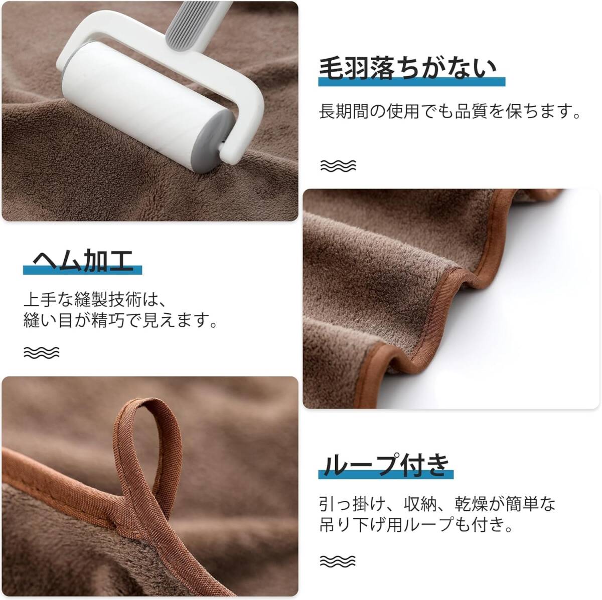 (ブラウン, 柔らかい ふわふわ 防臭 抗菌 3枚組/大判バスタオル 速乾 吸水 業務用 家庭用 プール用 浴用 ループ付き 14