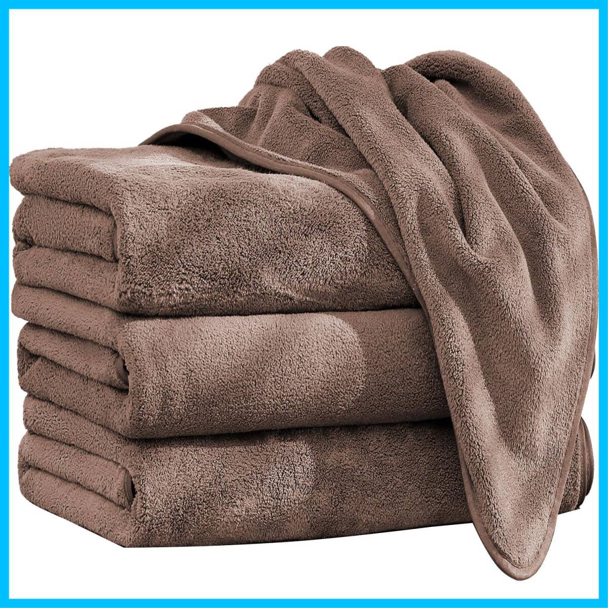 【大判バスタオル 4枚セット】家族みんなでオールシーズン使えます!サイズ:約140cm×70cm 重さ:約310g/枚 セット内容:ブラウン4枚 材質:マイクロファイバー 特徴:ループ付き・吸水・速乾・糸抜け防止・絞りやすい・蛍光染料なし。