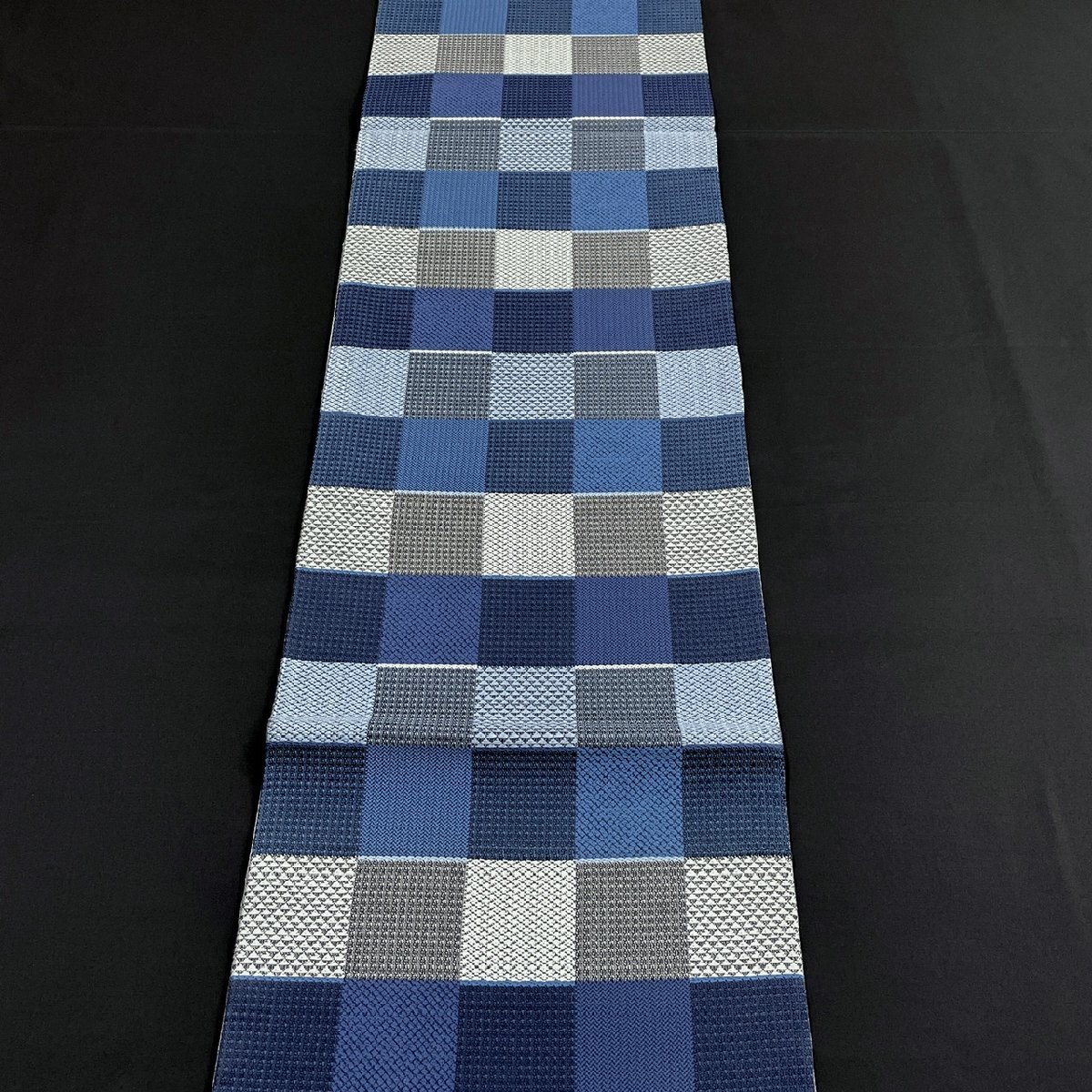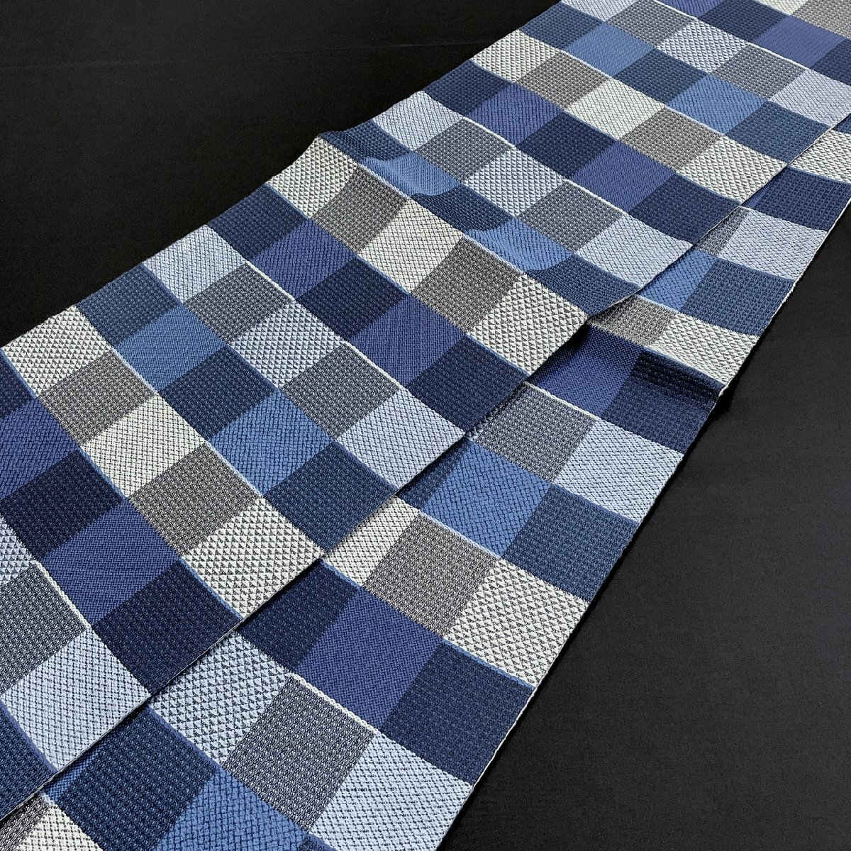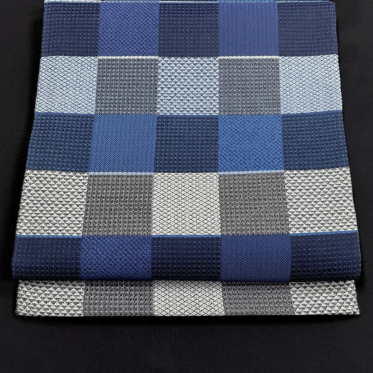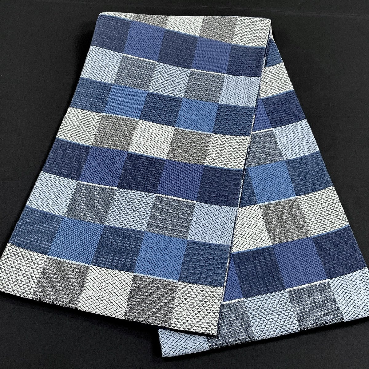 着物月花 本藍染 市松文様 袋帯 全通柄 正絹 tob580