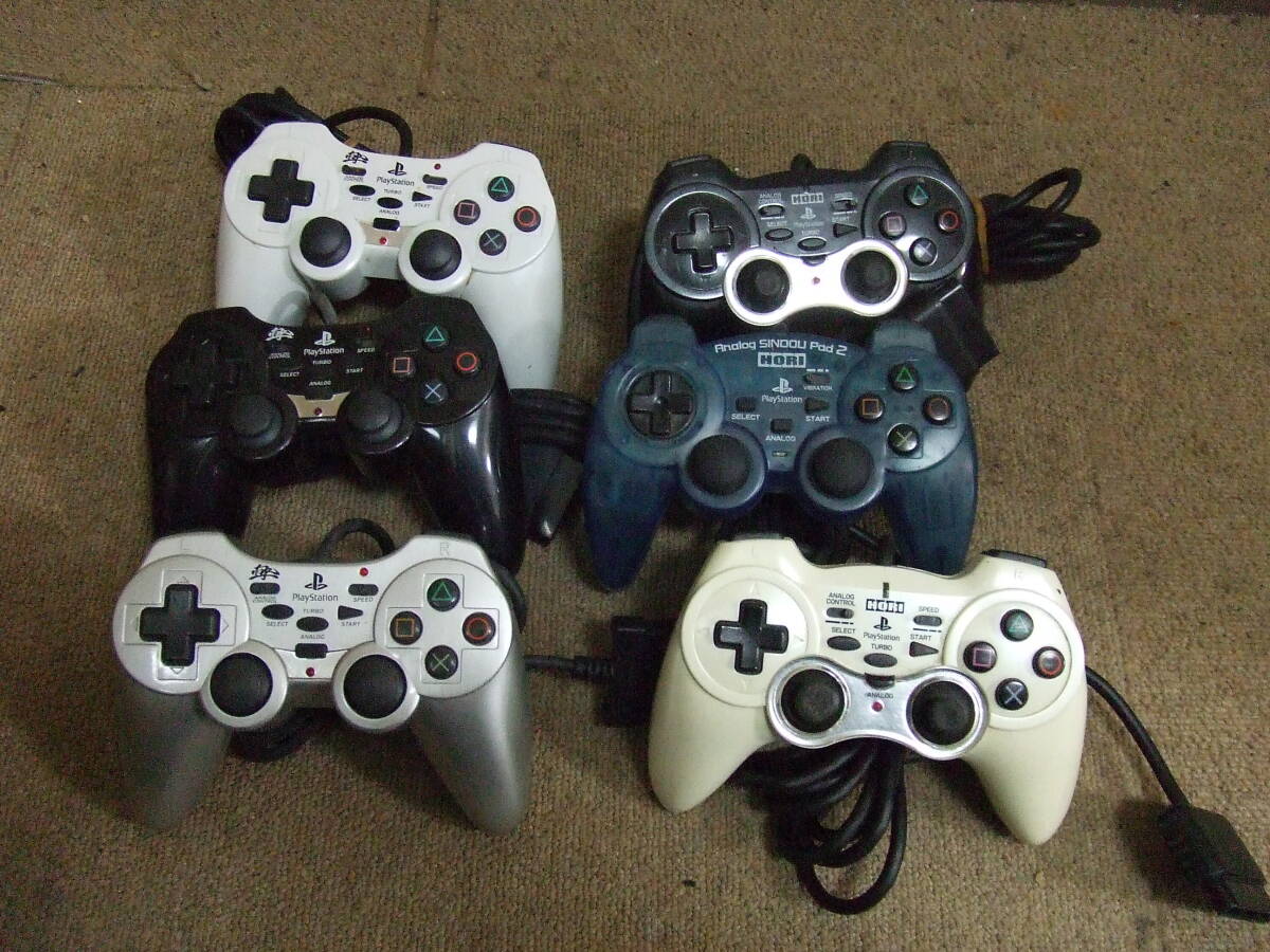 R969  PS2/プレイステーション2用社外コントローラ 6個まとめ/まとめて HORI/FUJIWORK 振動パッド/極 中古 未確認 現状 ジャンク