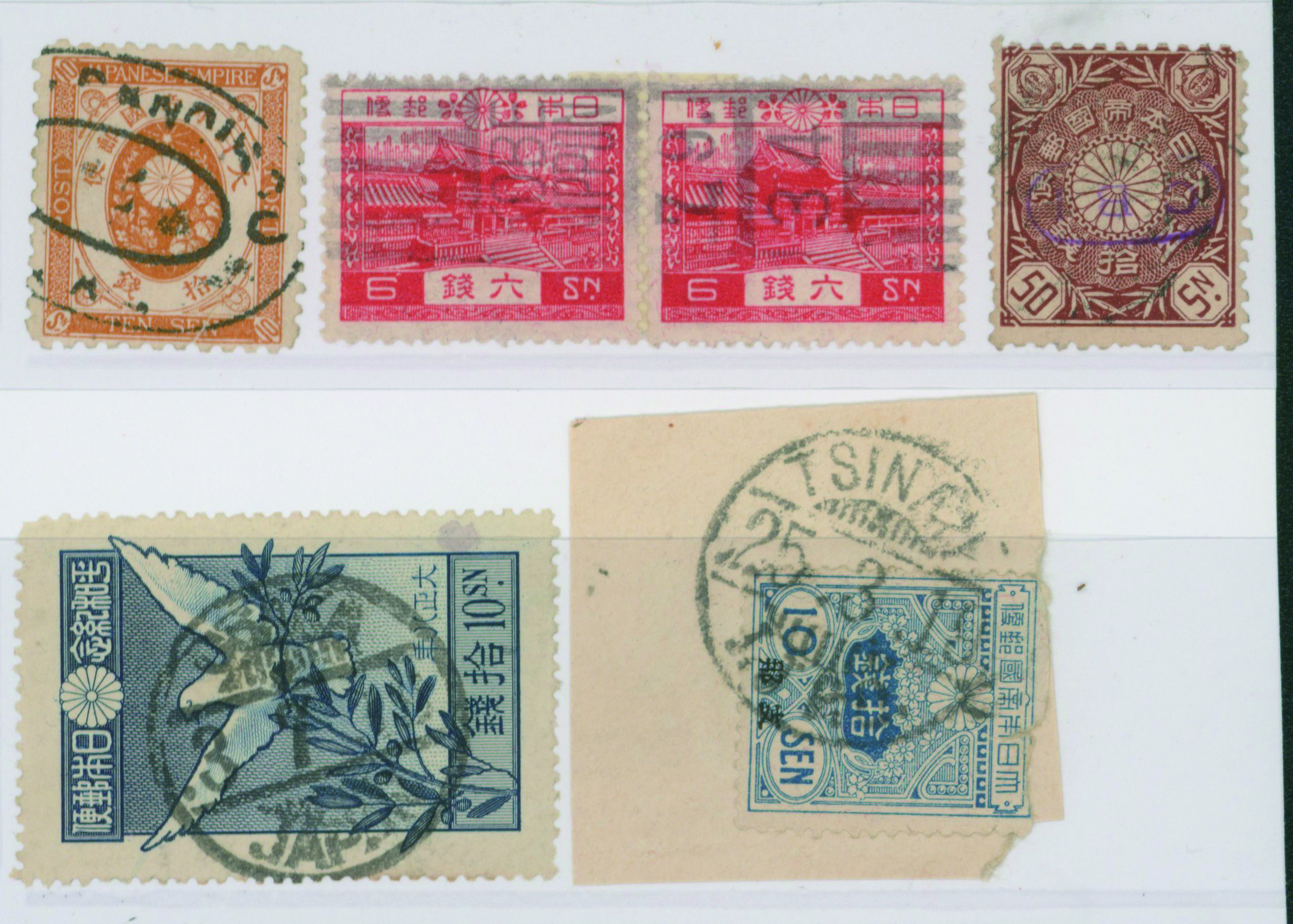 商品説明:[40625]外信欧文印消しセレクション 新小判10銭, 平和10銭 など 済 切手7枚 新小判10銭