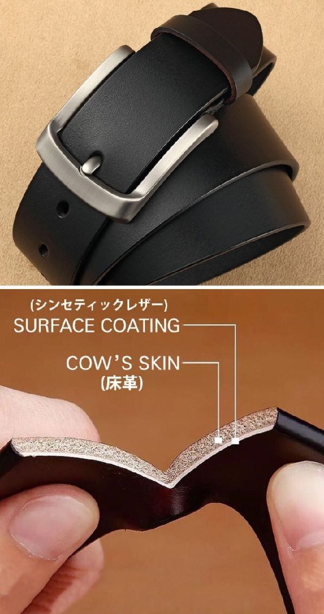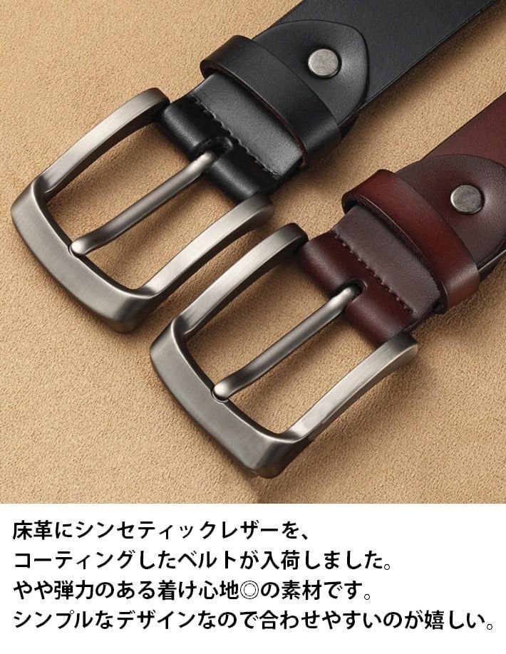 本革 床革 ベルト メンズ 130cm 大きいサイズ対応 シンセティックレザー ビジネスベルト カジュアル 7987409 ブラウンA 新品 1円 スタート