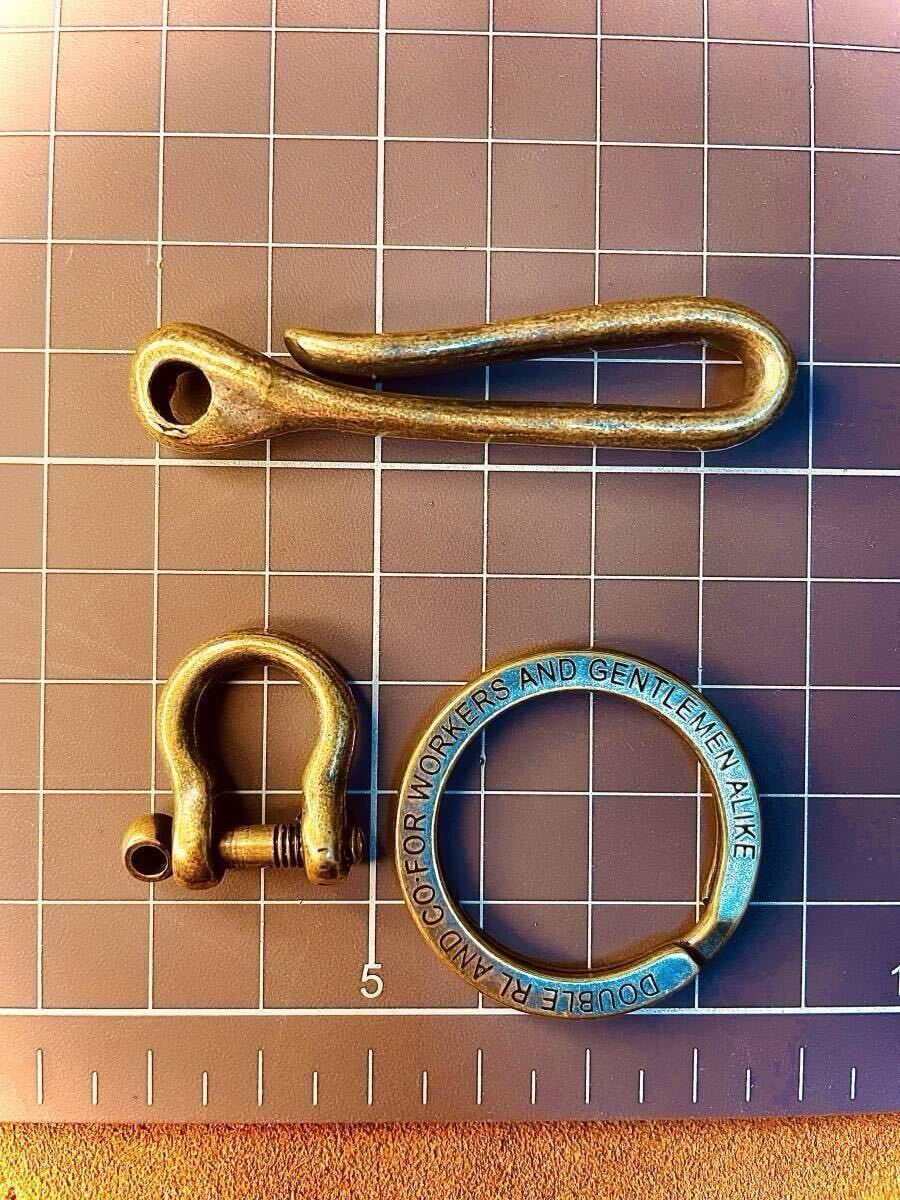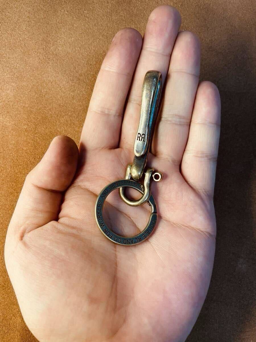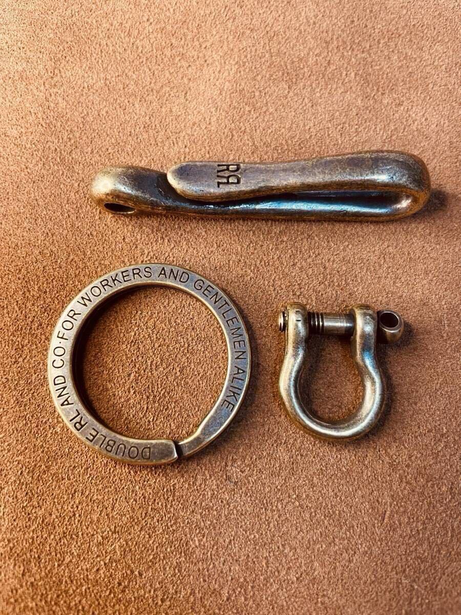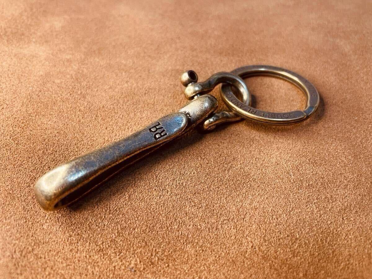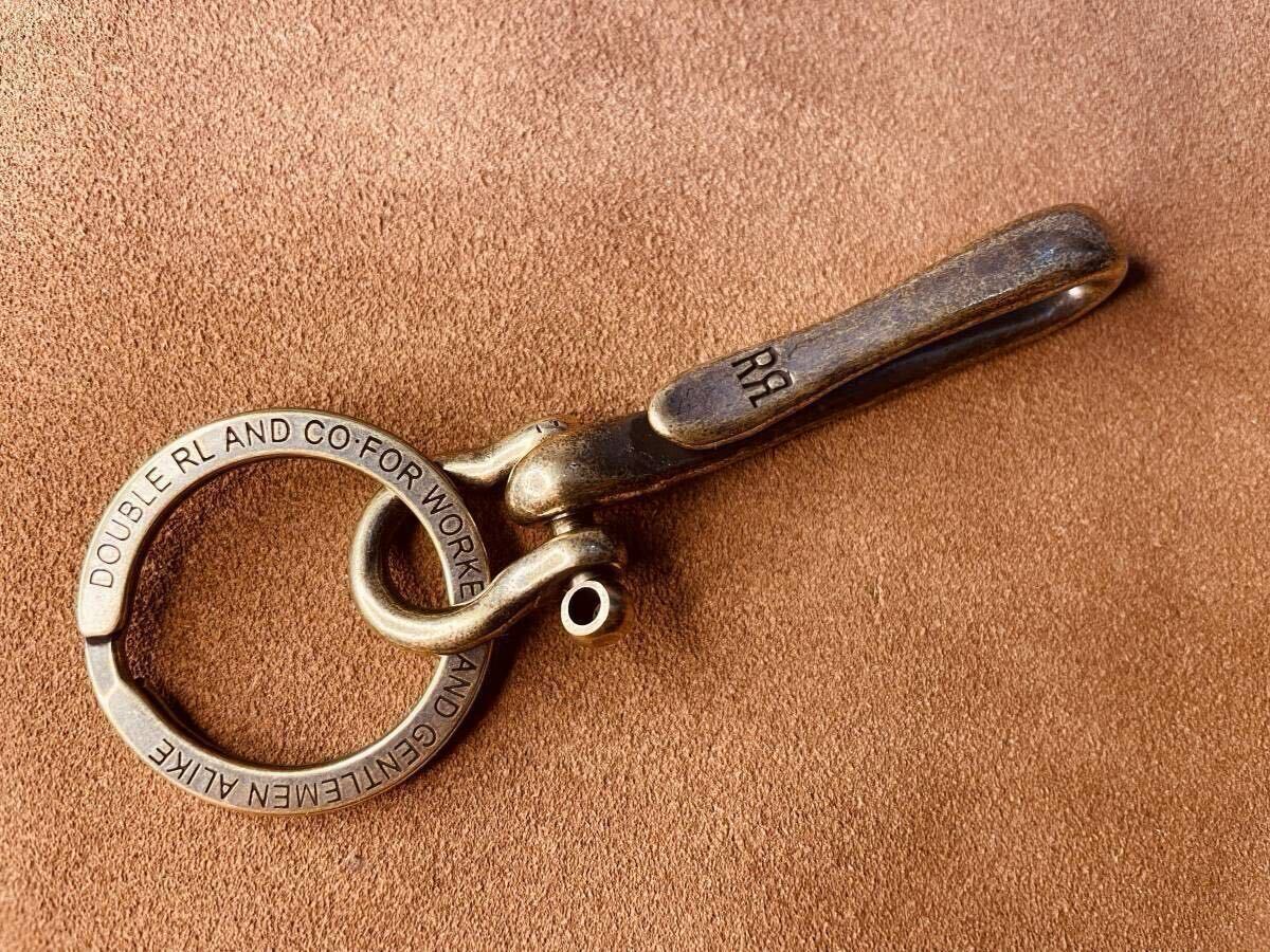 RRL キーフック キーホルダー ブラス 真鍮【素材】真鍮【サイズ】全体の長さ 約7.2㎝リングの径 約3.3㎝アメリカ雑貨や古着、ヴィンテージがお好きな方は気に入っていただけると思います!フック、二重リング共に真鍮無垢で作られた釣り針型のキーリングです☆真鍮無垢は使い込むと色が濃くなり、レトロ感が増しエージングが楽しめます♪ベルトループに引っ掛けてお使い頂けます。リングにも文字が刻まれておます。商品の特性上、真鍮の色、文字の黒ずみなど個々に異なります事をご了承ください。【サイズ】商品画像中の定規寸法と一緒に写った画像を参照してください。撮影角度によって若干の見え方に誤差が生じる場合がございます。【材質】真鍮 brass【注意点】海外製品のため日本製品に比べ作りが甘い場合がございます。小さなキズ、色むらなどある場合がございます。ハンドメイドですので若干の個体差がある場合や、予告なく一部仕様が変更になることがあります。(画像は使い回しです)ご理解のある方のみご購入ください。予めご了承ください。ビンテージ、アンティーク商品にご理解ある方ご検討よろしくお願いします。#ヴィンテージライン#バイカー#brass#DOUBBLE RL#ウォレットチェーン#キーチェーン#クライミー#CRIMIE#CALEE