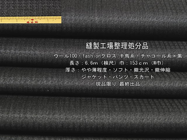 | ウール100 fashionクロス 千鳥系 やや薄 チャコール系×黒 6.6m | |