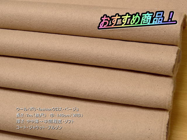 商品は、ウール/ポリ・fashionクロス・ベージュでございます。