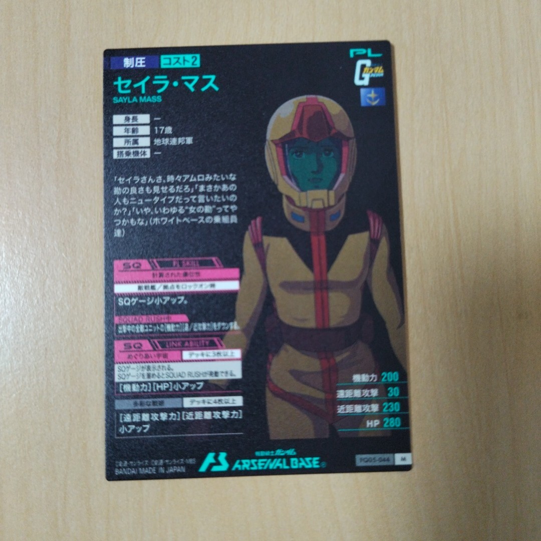 ガンダムアーセナルベース、Mレア、セイラ・マスの出品となります。未使用品です。排出後、スリーブに入れて保管していますが初期キズなど気になさる方はご遠慮ください。配送料金は梱包代込みで全国一律、120円とさせていただきます。他の出品との同梱は対応いたします。ノークレム、ノーリターンにてお願いいたします。