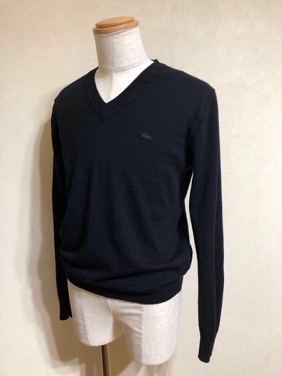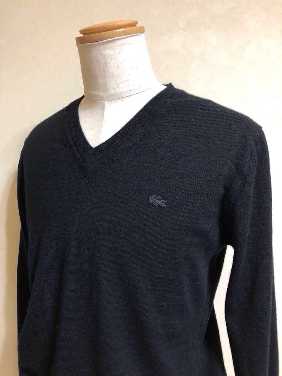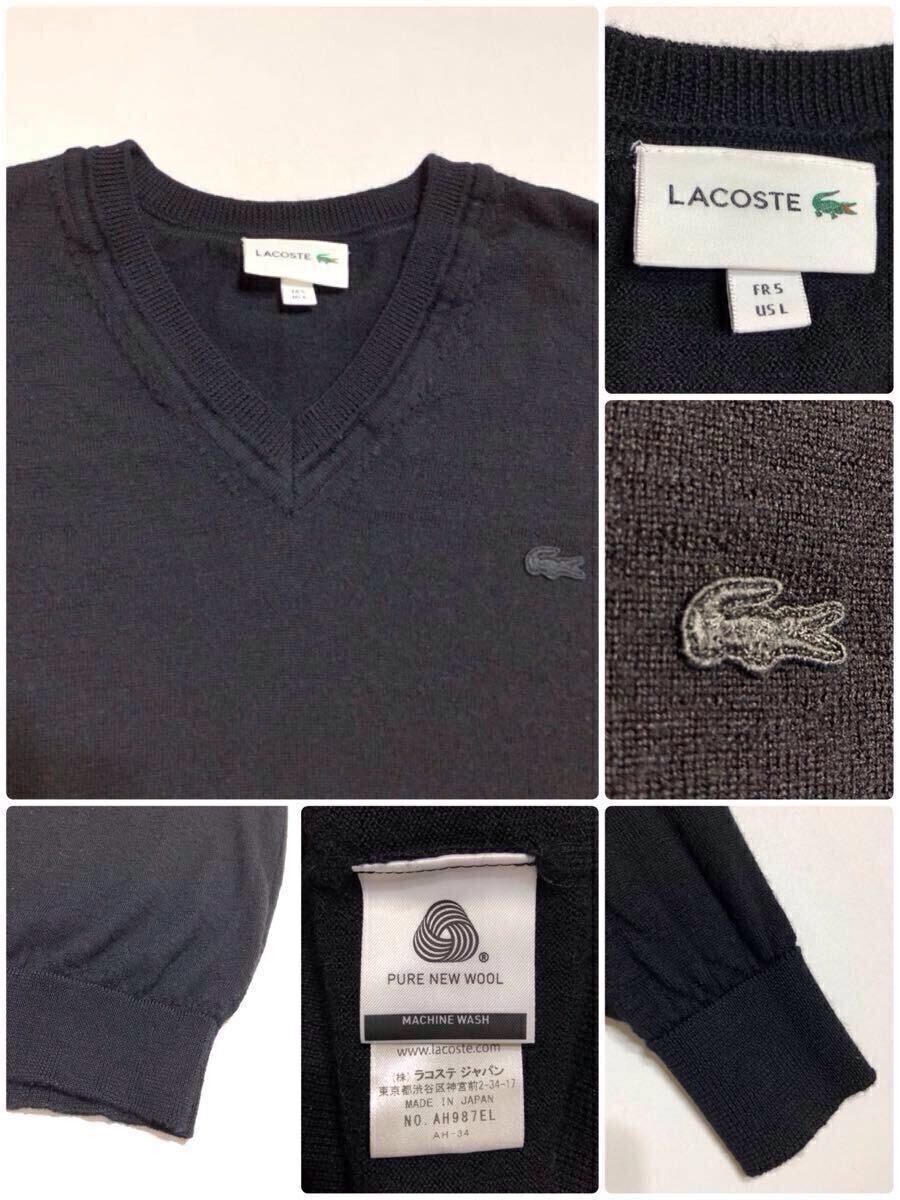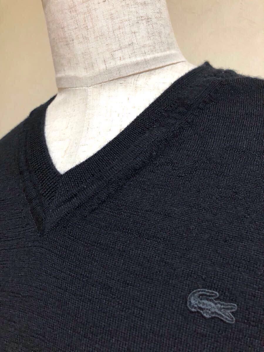 LACOSTE ラコステ Vネック ウール セーター トップス 黒ワニ サイズ5 長袖 黒 日本製 AH987EL 毛100%