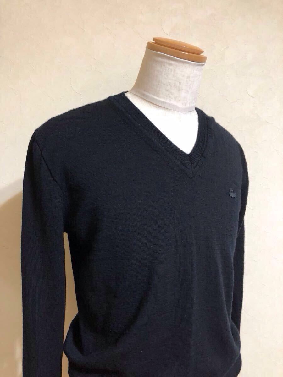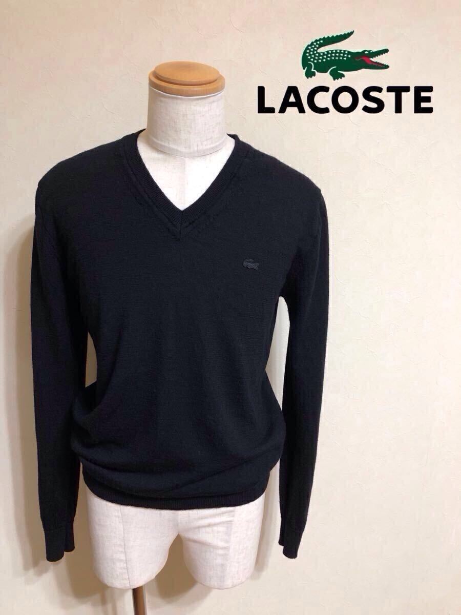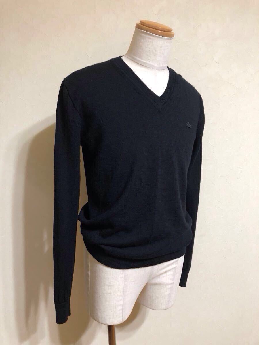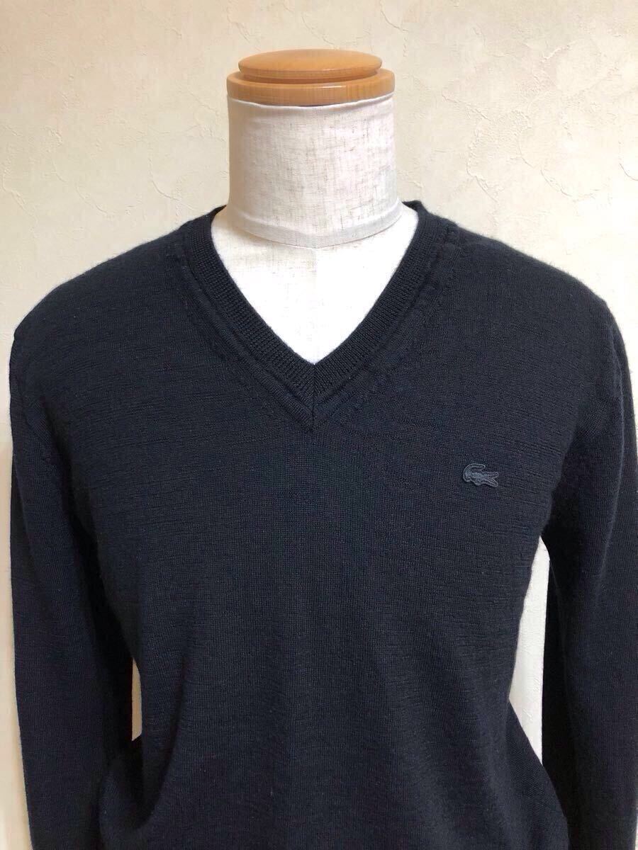 LACOSTE ラコステ Vネック ウール セーター トップス 黒ワニ サイズ5 長袖 黒 日本製 AH987EL 毛100%