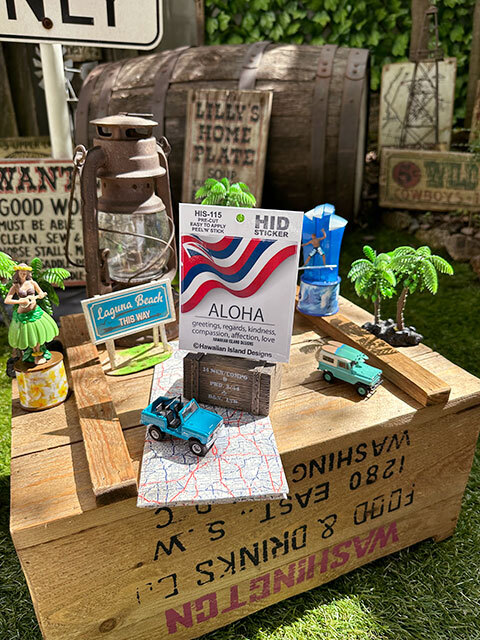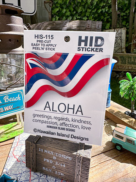 風になびくハワイ州旗をクールにデザインしたハワイアンステッカーです。