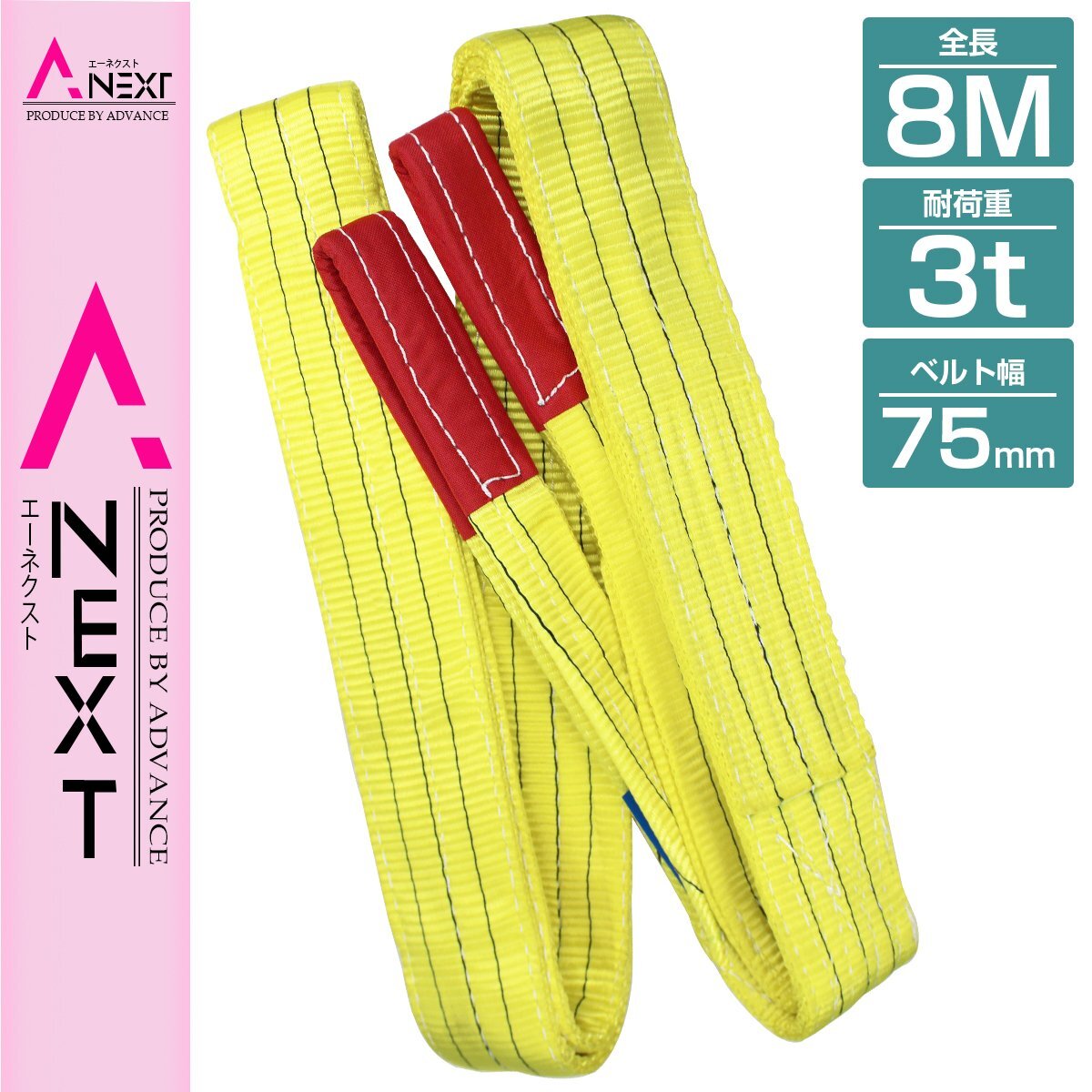 [1本/耐荷3t/長さ 8m] スリング ベルト 吊上げ ナイロン クレーン ロープ 荷吊り 玉掛け 牽引 運搬 3000kg 3トン 幅75mm