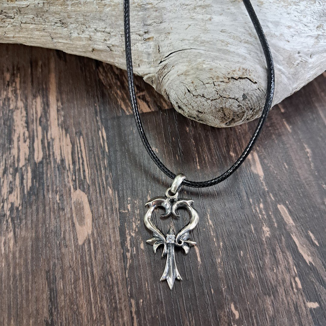 【C7018】送料無料 シルバー925 ハートクロス アラベスク ゴシック ペンダントトップ アクセサリー メンズ レディース