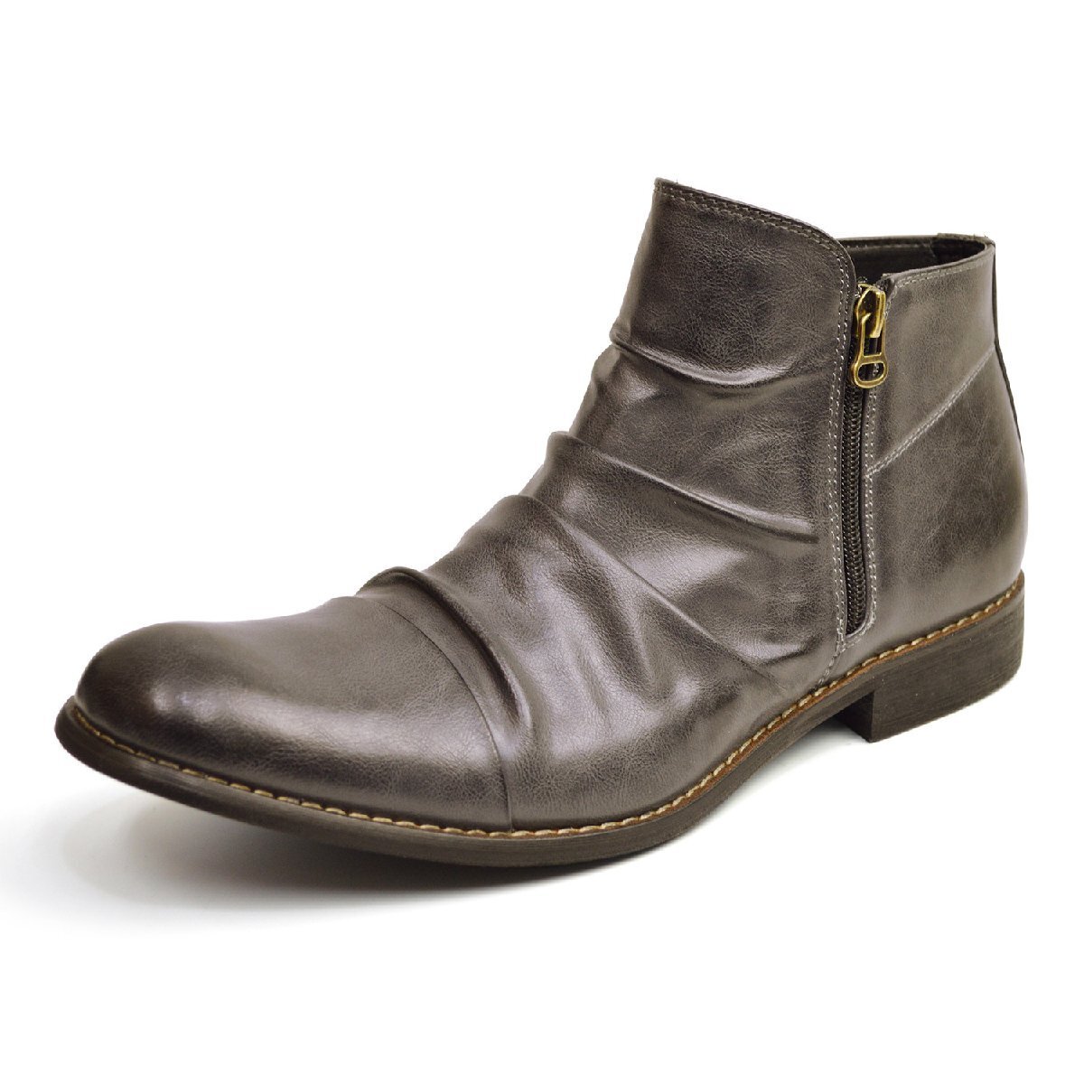 新品■ Wサイドジッパー ドレープブーツ Men's アンティーク ブーツ ショート丈 アンクル丈 メンズ キレイめ ビンテージ 男 靴 ze2789