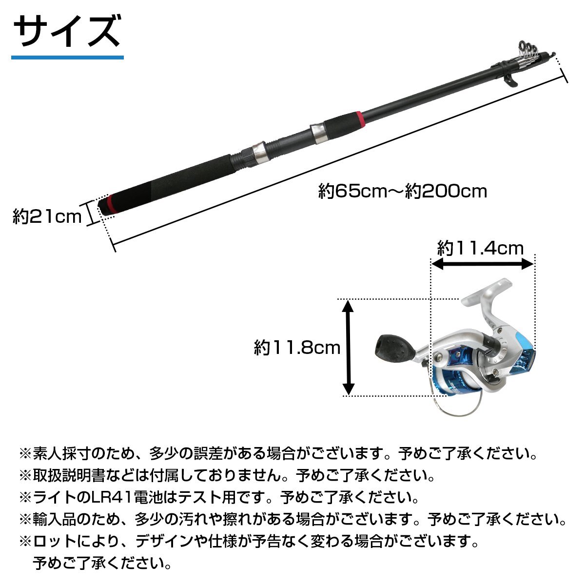 2.0m 伸縮 竿 一式 セット 親子で川遊び 堤防釣りに最適 ちょい釣りセット 釣りロッドリールコンボ レッド 赤 釣り竿