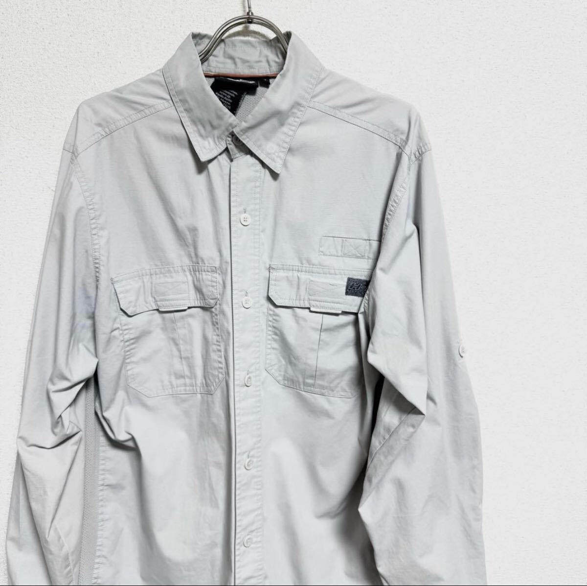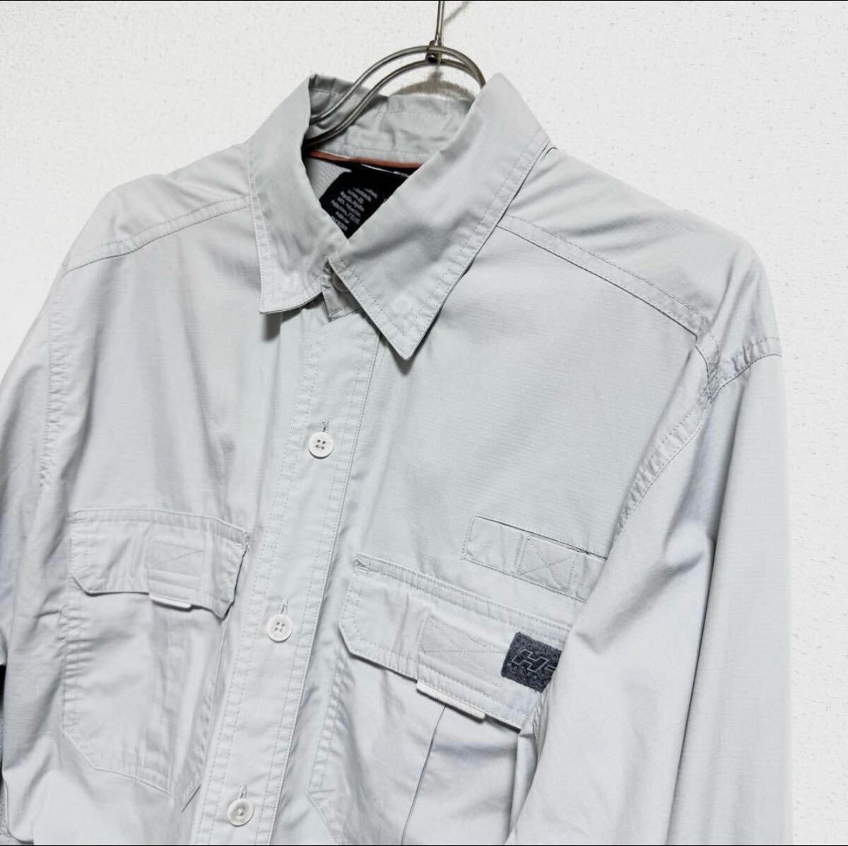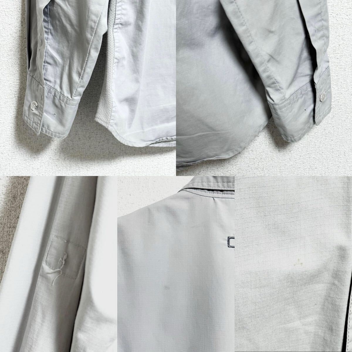 数カ所に汚れ、袖口のボタン欠損、タグの破損などが見受けられます。(画像9, 10枚目など)