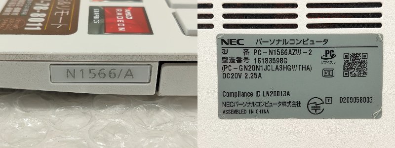 ●【ジャンク】NEC LAVIE N1566/A PC-N1566AZW-2 / Ryzen7 4000Series / 4GBメモリ / HDDなし / 15.6型 / 通電不可【 ITS JAPAN 】
