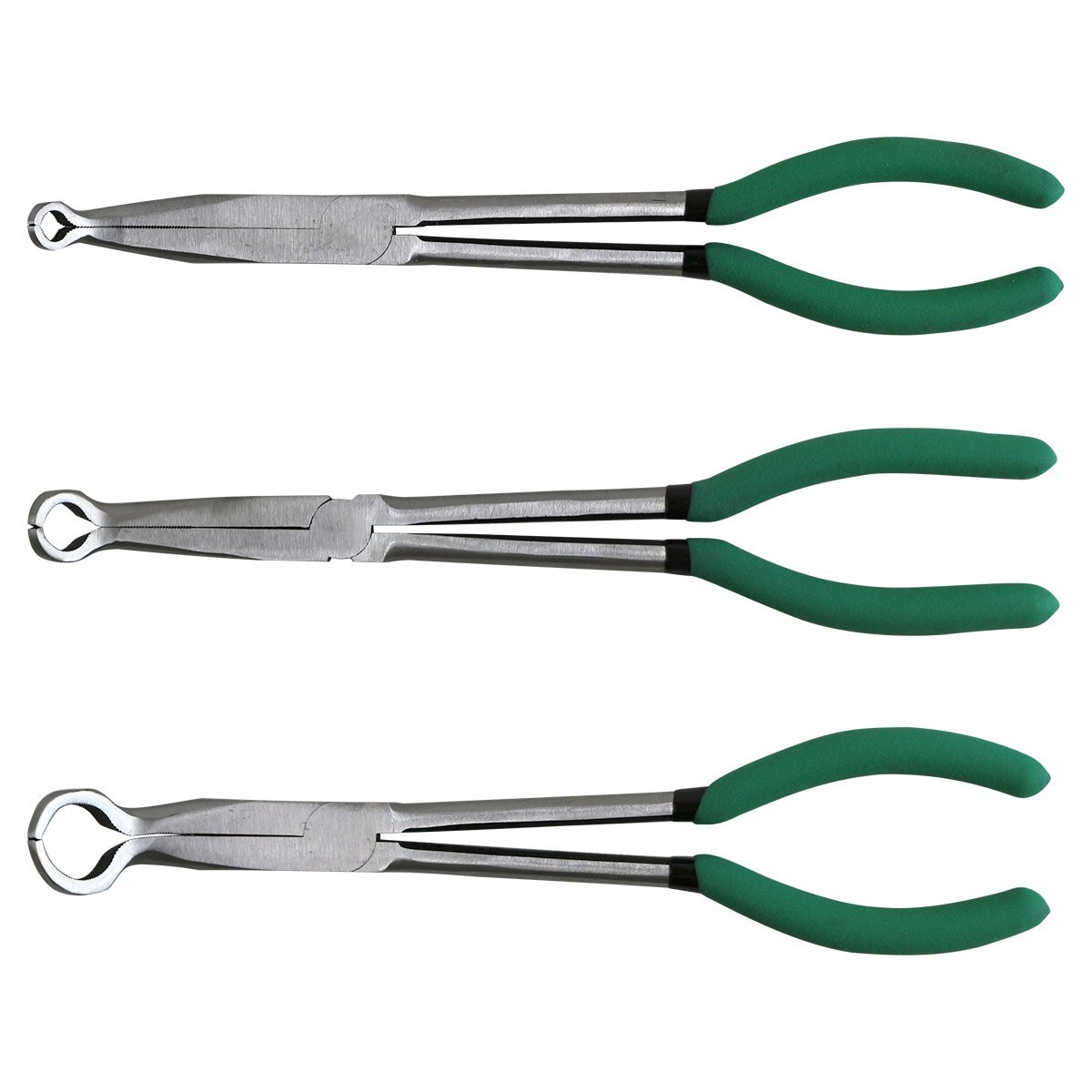【新品即納】『3本セット』 ホースプライヤー 曲げ 大中小 全長27cm 45度 カプラー ホース 外し ロング プライヤー 燃料ホース 脱着 整備