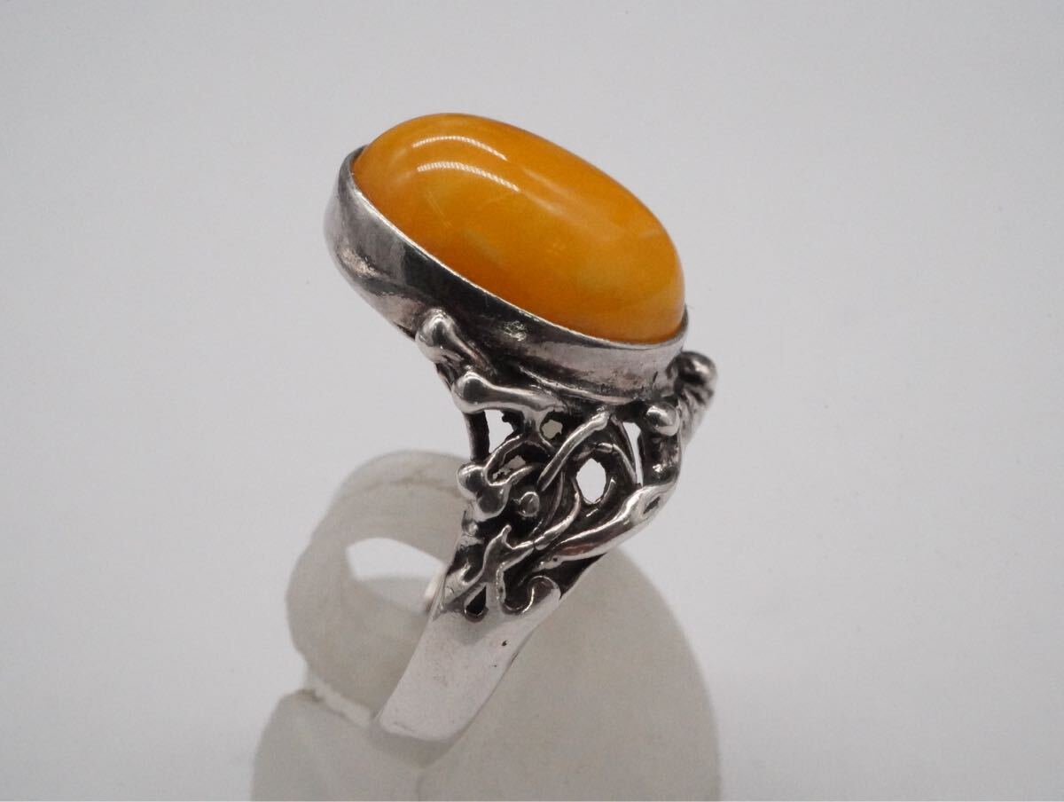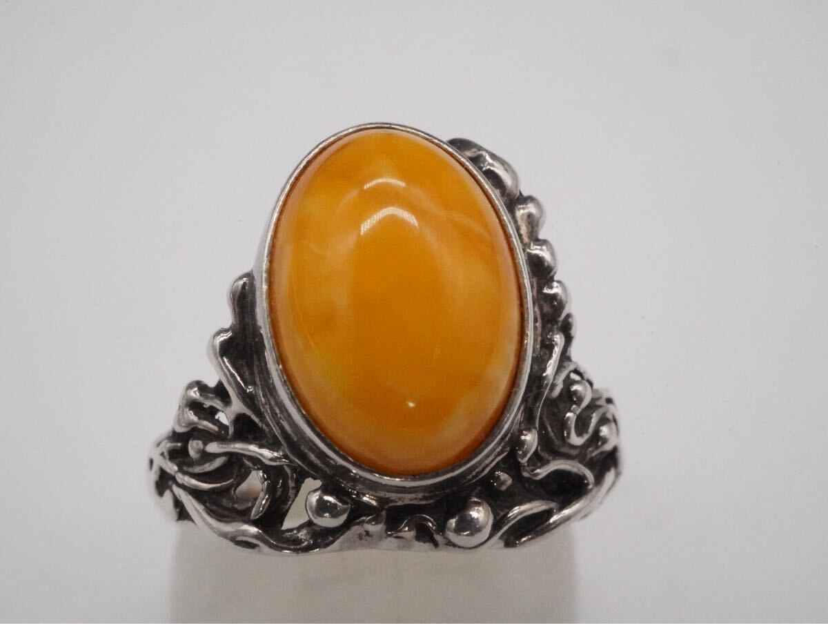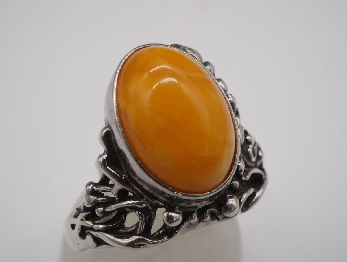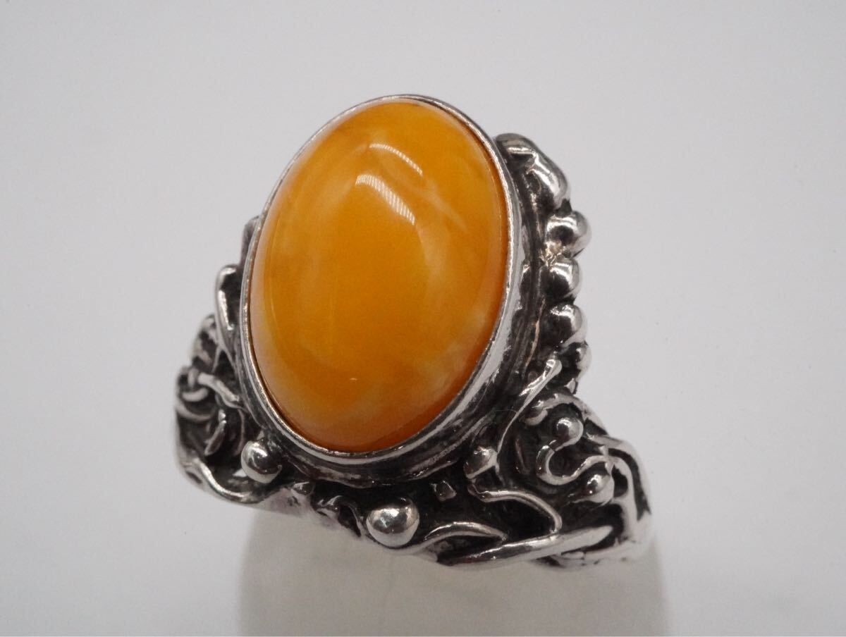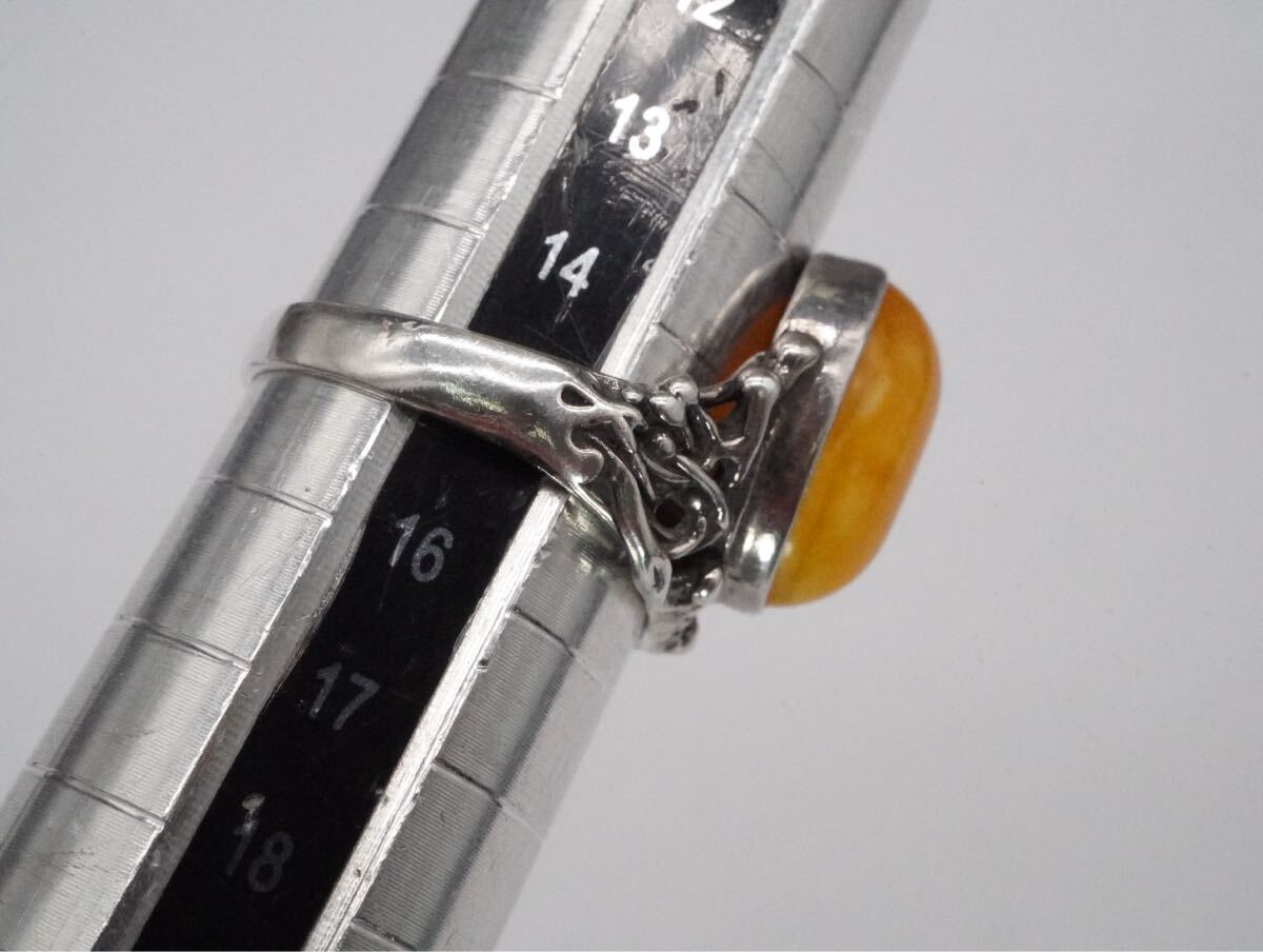 【259】15号 刻印解読不可 琥珀 こはく アンバー ロイヤルアンバー SILVER シルバー 925 指輪 リング アクセサリー TIA