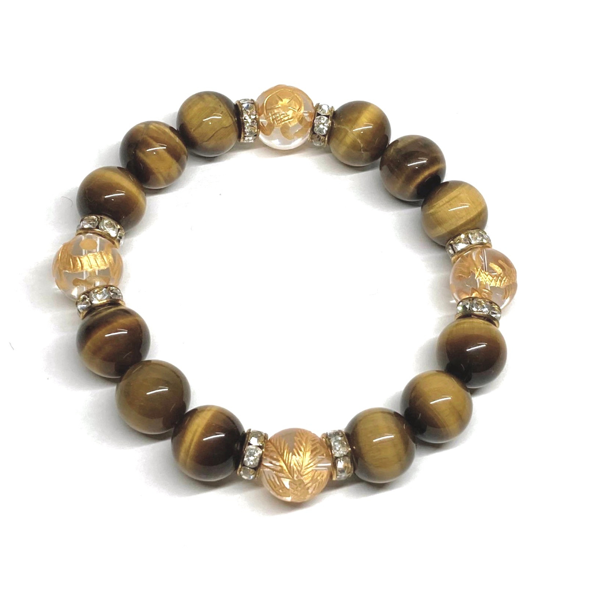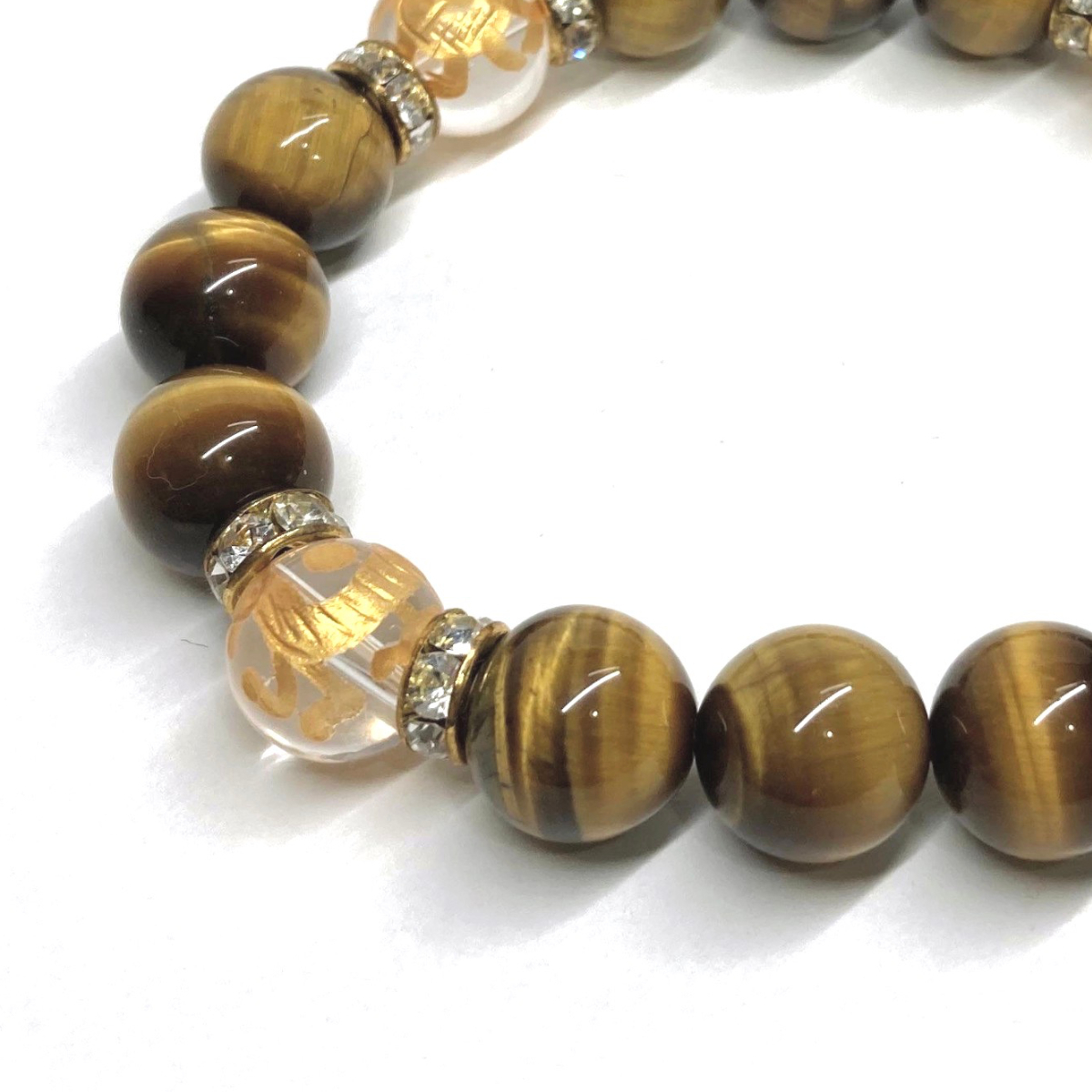 四神獣金彫水晶×タイガーアイ 12mm パワーストーン ブレスレット天然石 青龍 白虎 玄武 朱雀 運気上昇 開運 お守り 四神獸 四神相応 G