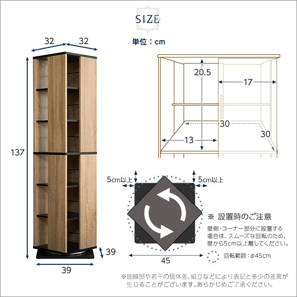 【ポイント】 くるくる回る回転式なので探しやすい! コンパクト設計だから省スペースにおけます。 カラーはインテリアに馴染む2色がございます。 |