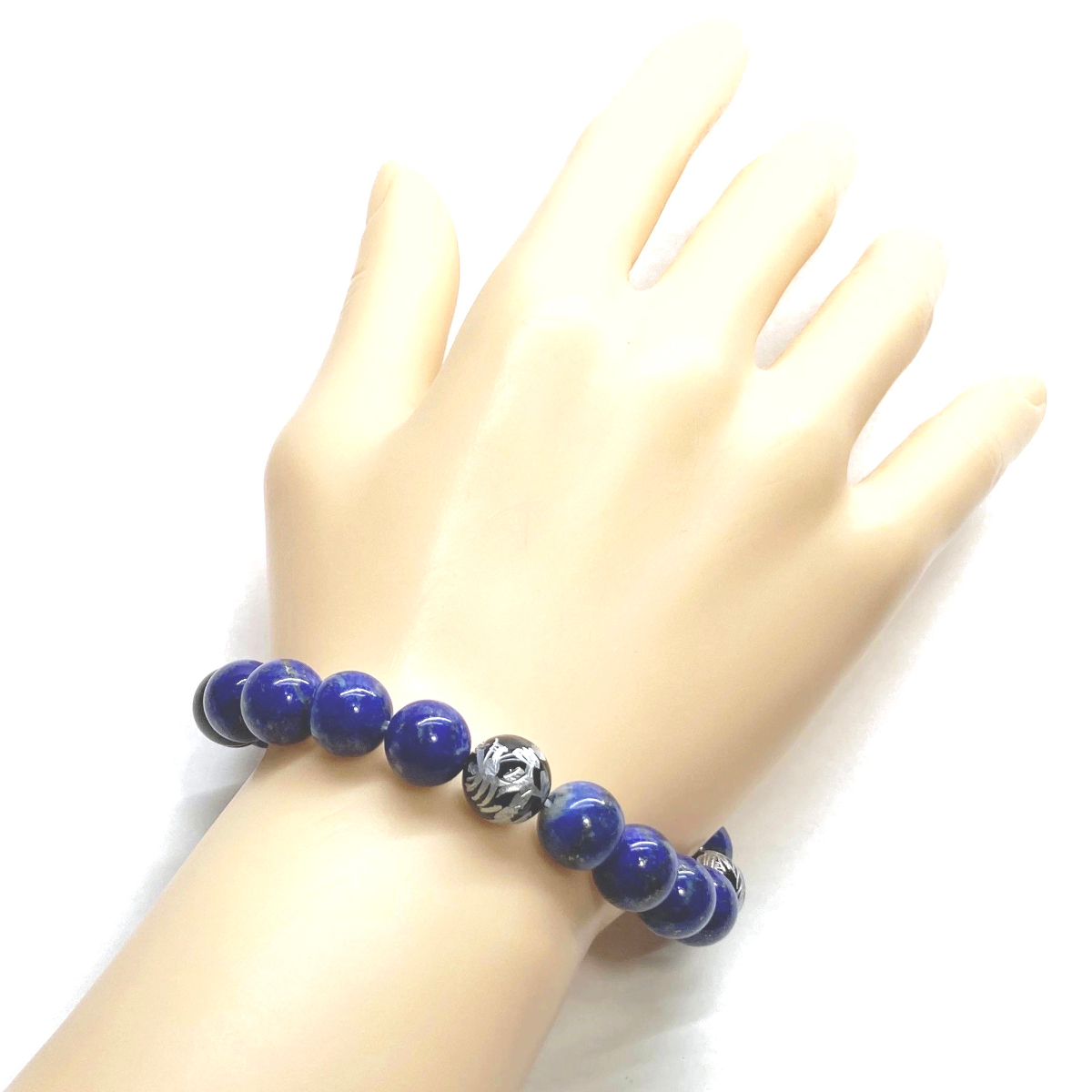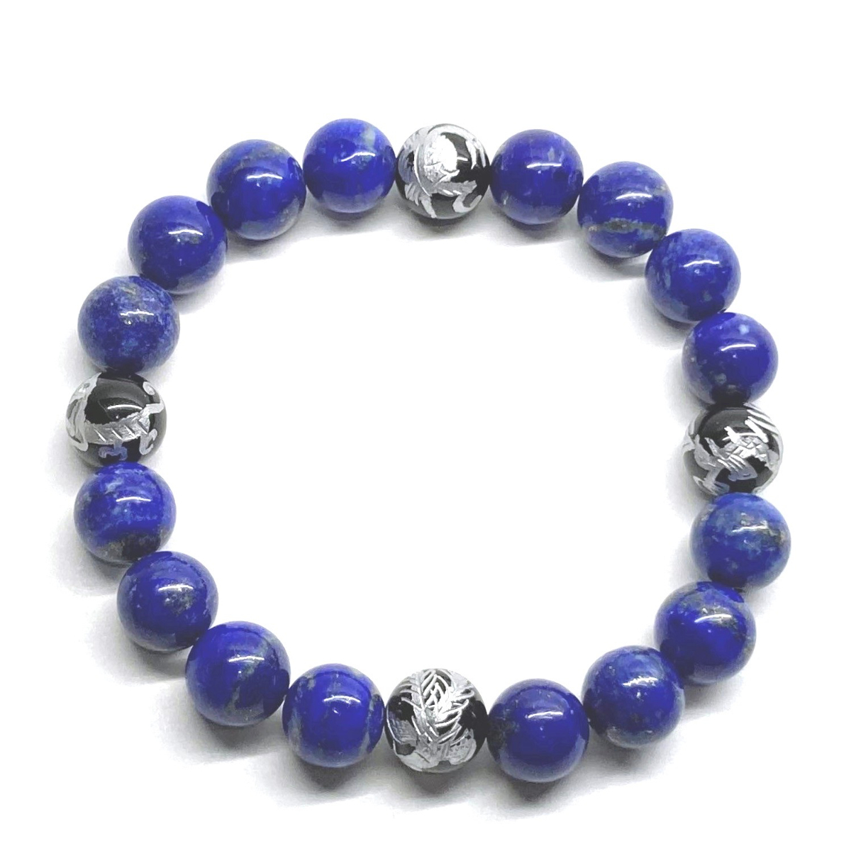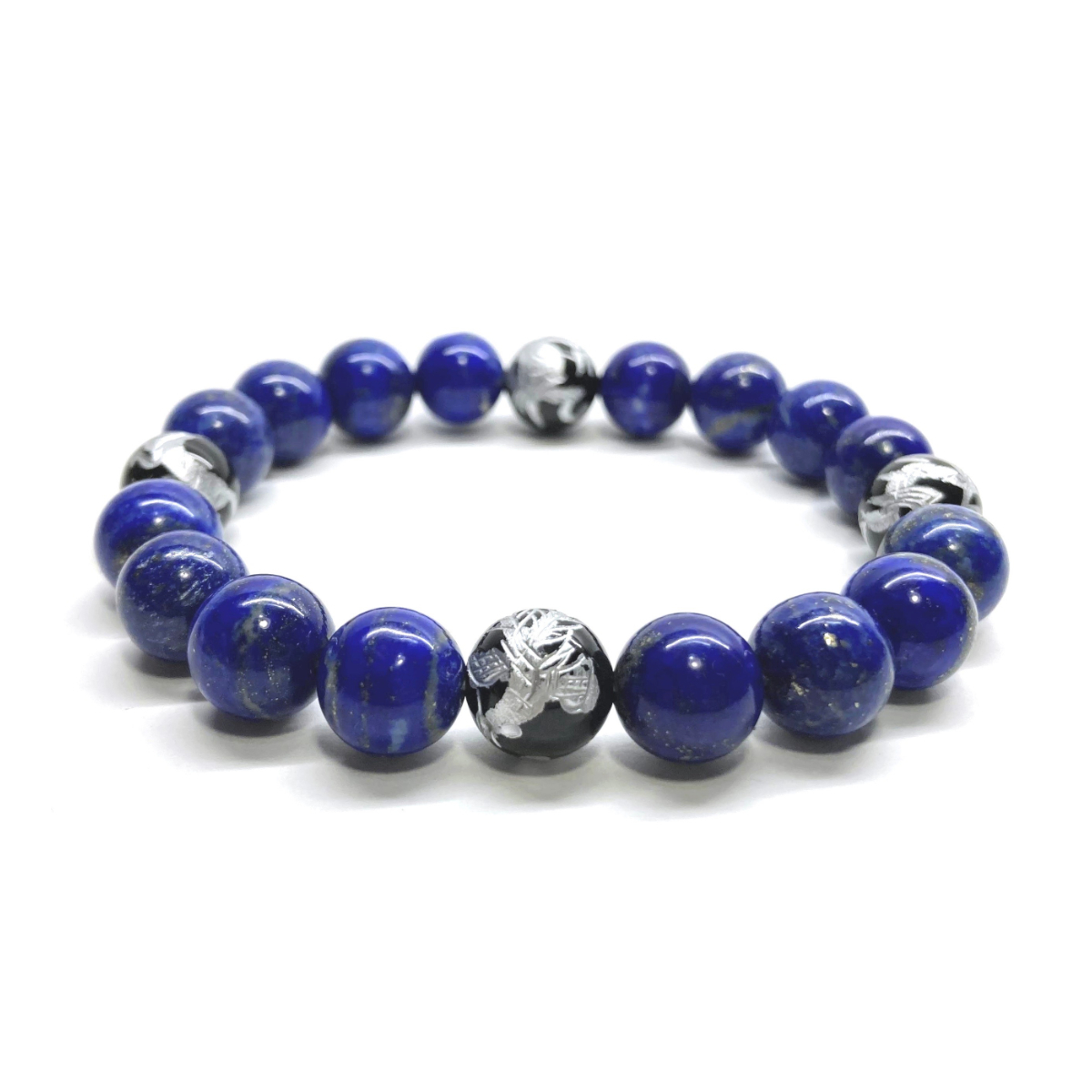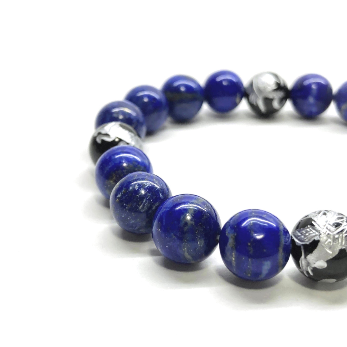 10mm 四神獣銀彫オニキス×ラピスラズリ パワーストーン ブレスレット天然石 運気上昇 開運 幸運 金運 恋愛運 青龍 白虎 玄武 朱雀 ☆