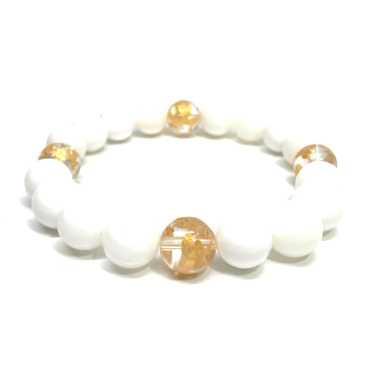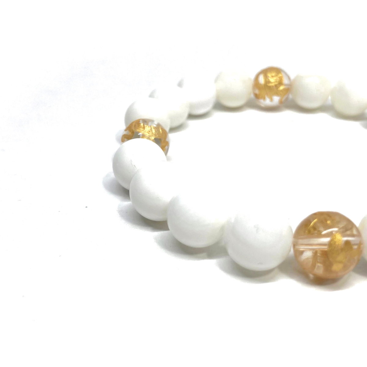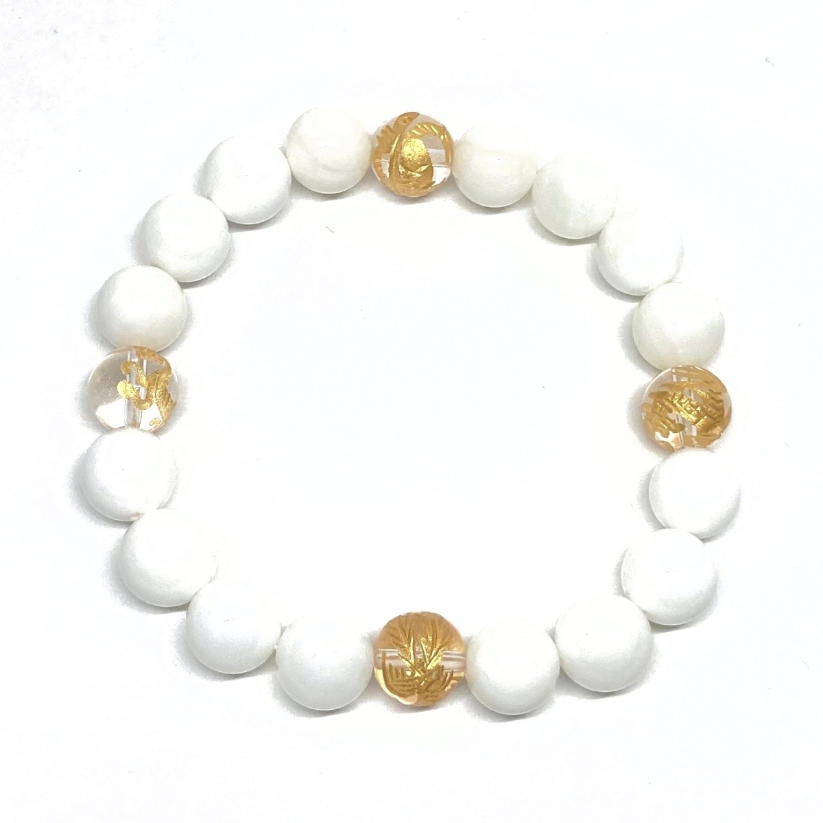 10mm 四神獣金彫水晶×ホワイトオニキス パワーストーン ブレスレット天然石 運気上昇 開運 金運 恋愛運 青龍 白虎 玄武 朱雀 ☆