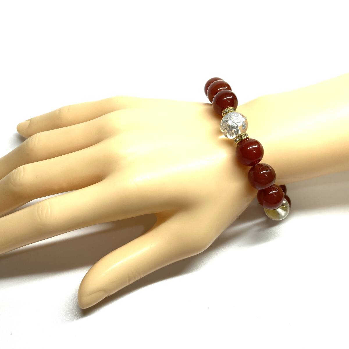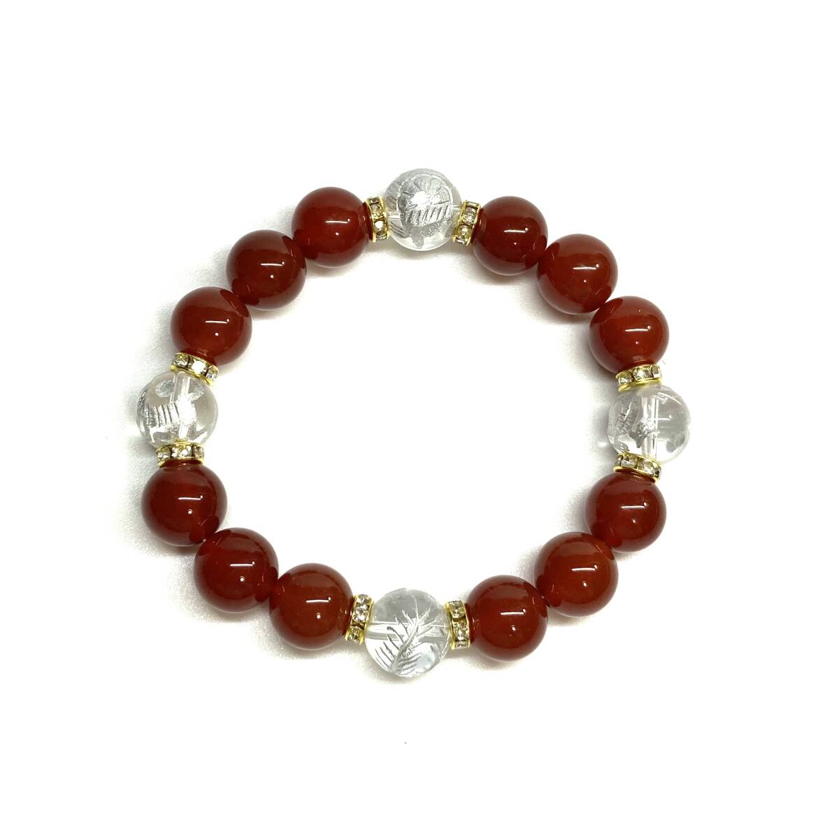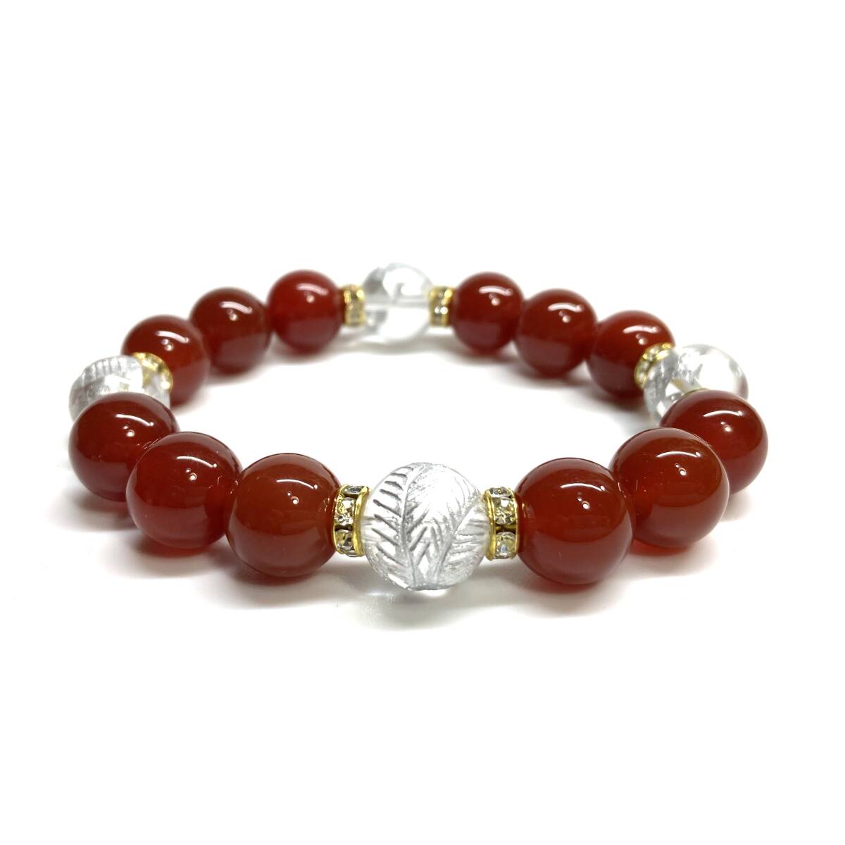 四神獣銀彫水晶×赤瑪瑙 12mm パワーストーン ブレスレット天然石 青龍 白虎 玄武 朱雀 運気上昇 お守り 金運 健康運 四神獸 四神相応 G