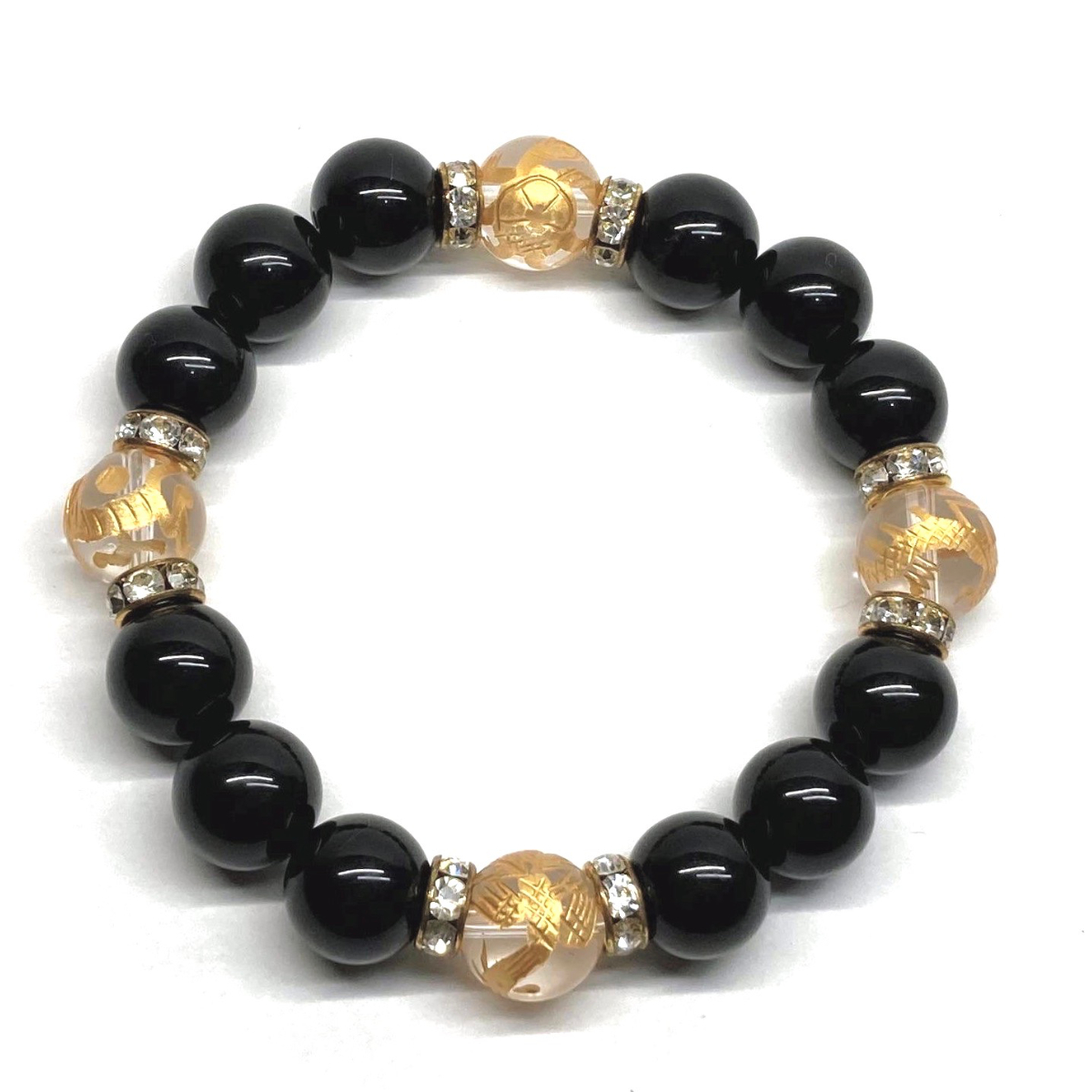 四神獣金彫水晶×オニキス 12mm パワーストーン ブレスレット天然石 青龍 白虎 玄武 朱雀 運気上昇 お守り 金運 健康運 四神獸 四神相応 G