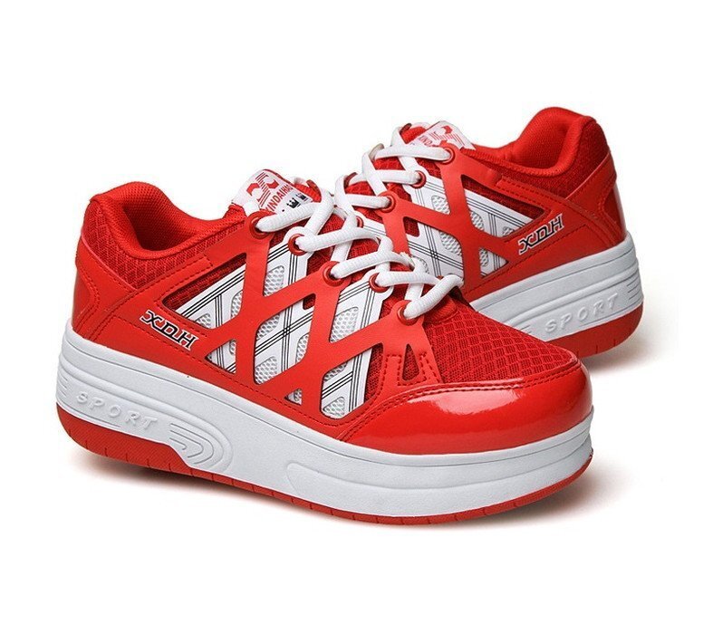 1スタ☆光る☆LED ライトアップスニーカー&ローラーシューズ 一体型 【K-161レッド 19cm】夜間 スケート靴 反射材 ジョギング 自転車