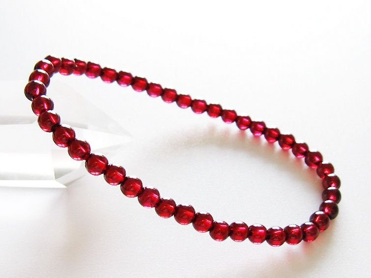 | ■商品名: ガーネットブレスレット ■商品ID: T483-7882 ■商品重量:約 7.2g ■商品サイズ:内周約:155mm(±5mm)粒直径約:4mm(±0.5mm) 【ガーネット(柘榴石)】 ガーネットは1月の誕生石である事で知られ、形が柘榴(ざくろ)の粒に似ている事から、ラテン語で種子の意味を表す「granatus」(グラナタス)がガーネットになったとされています。 古代エジプト、ギリシャ、ローマで宝飾品として愛されていた他、ガーネットはノアの方舟の伝説で明かり代わりとして方舟に吊り下げたと言われた歴史のある石です。 治療薬として用いられた最も古い宝石だともされており、強い活性作用で心身が弱っているときに身に着けると力があふれてくるとされ、また血液の循環等も良くして体内の毒素を排除する力があるとも言われています。 精神面では感情面のコントロールを高めるとされ、他者に対する怒りや自分に対する怒りの両方を浄化します。 また愛する気持ちを象徴する一面もあるので、恋人や夫婦関係において円満な愛情を築きたい時におすすめです。 ⇒ ガーネットをもっと詳しく ◆ワンポイント情報 「ガーネット」とは一つの鉱物名だけを指すのではなく類似した仲間を含む鉱物を総称したグループ名です。そのためグリーンガーネット(ツァボライト)やオレンジガーネット(ヘソナイト)など深紅以外にも数多くの色が存在します。 |