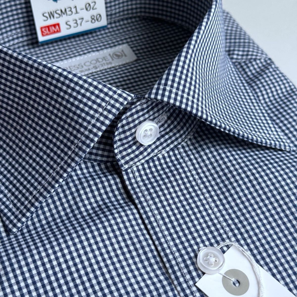 ワイシャツはスリムタイプです、詳しくは以下の寸法でご確認ください。形状安定です。