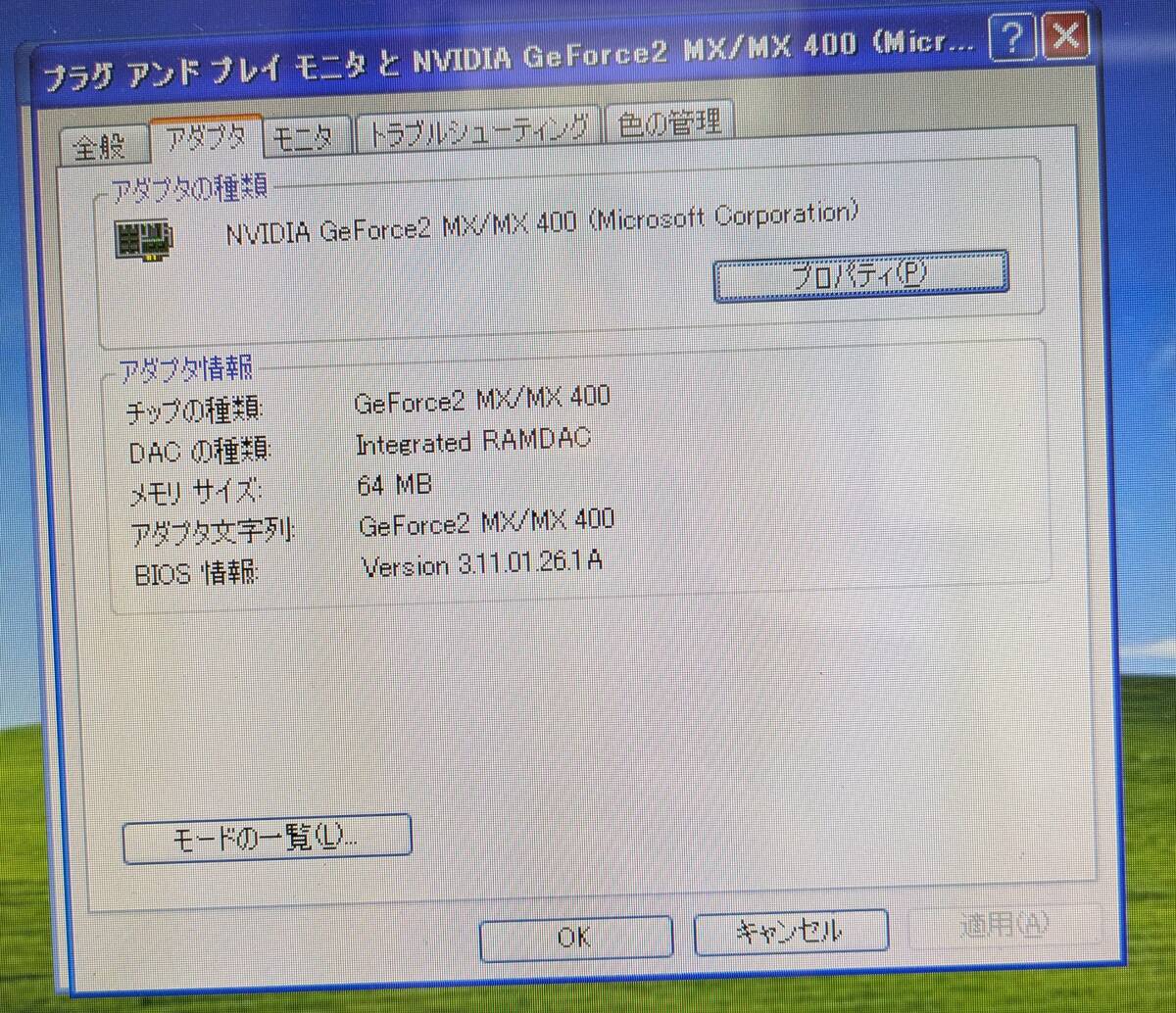 AGP NVIDIA GeForce2 MX400 64MB WindowsXP 動作確認済