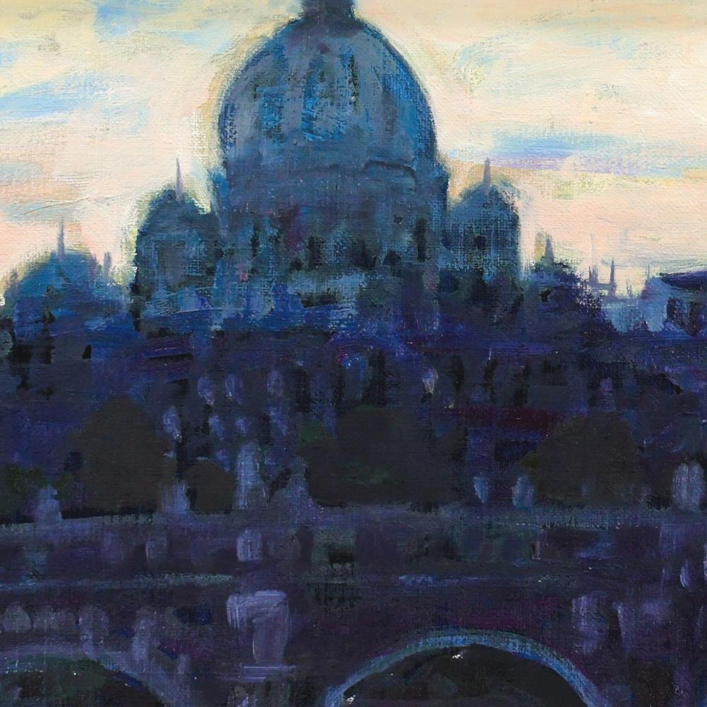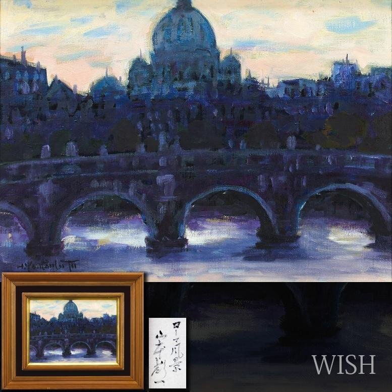 【真作】【WISH】山本彪一「ローマ風景」油彩 4号 ◆朝陽に染まるローマ大聖堂   〇昭和洋画壇巨匠 仏コマンドール勲章 #25112753