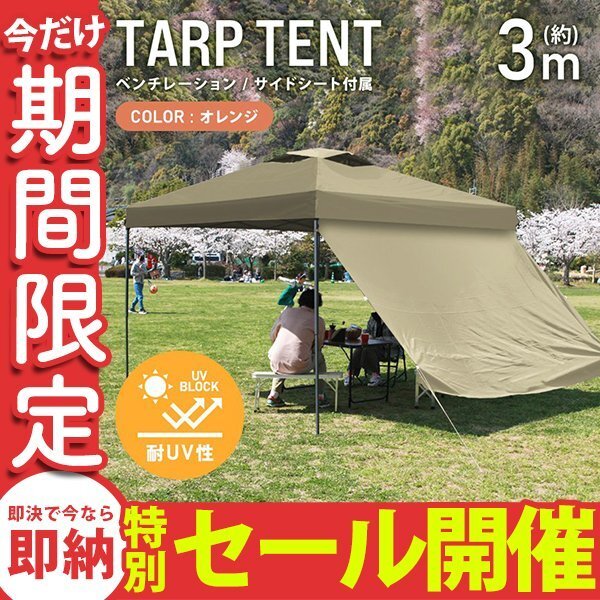 | 強い日差しでもこの3m×3mのタープテントは快適な日陰を作ってくれます! |