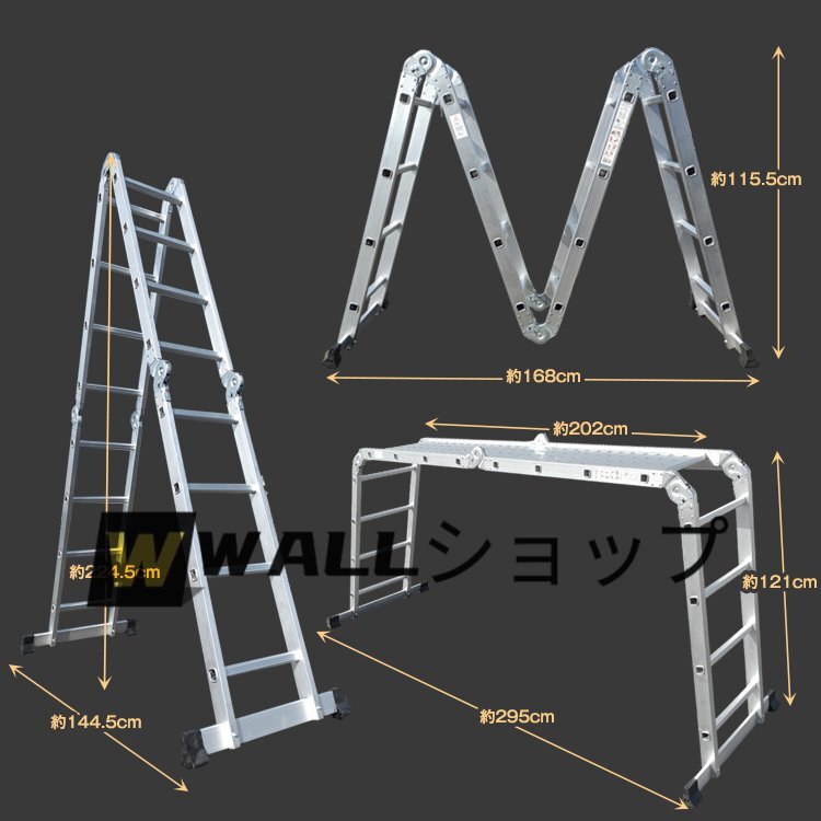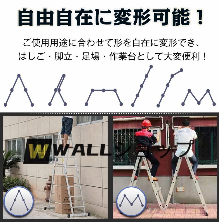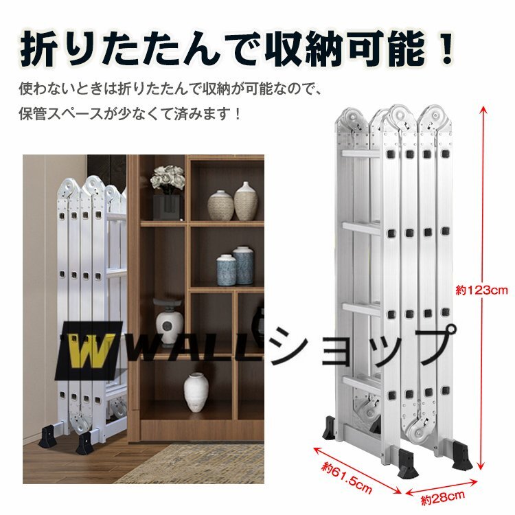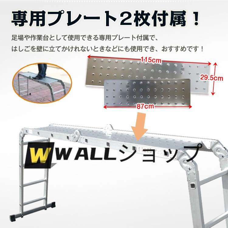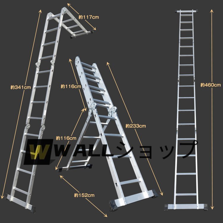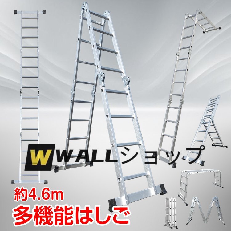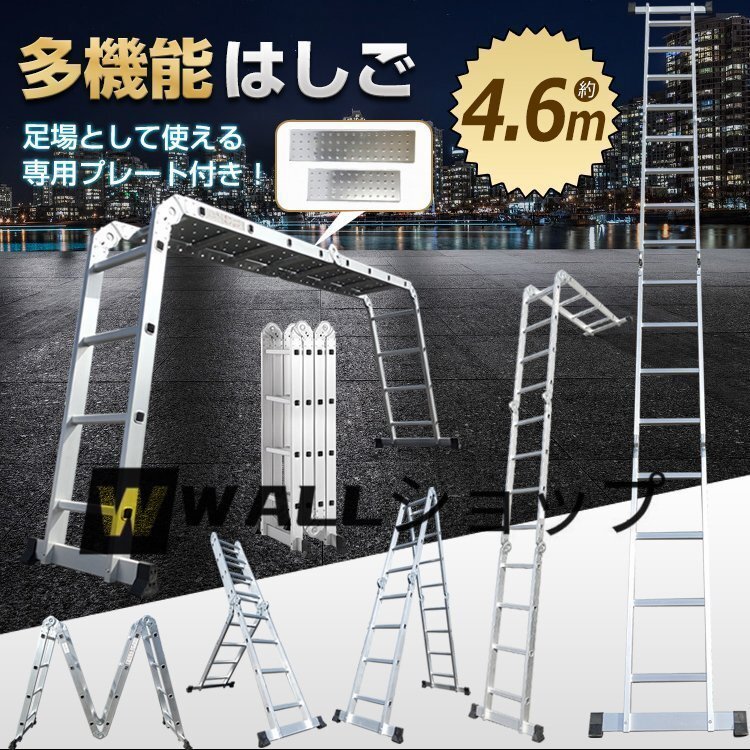人気推薦☆はしご 4.6m 伸縮 脚立 作業台 アルミ 折りたたみ 梯子 ハシゴ ラダー 多機能 プレート付き 高所 足場 剪定 雪下