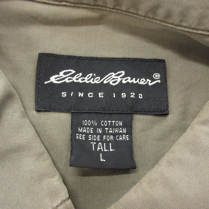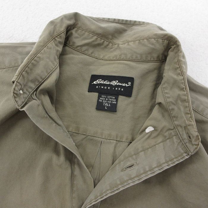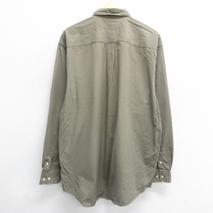 【商品名】 XL★古着 エディーバウアー 長袖 ブランド シャツ メンズ ロング丈 コットン ボタンダウン 緑系