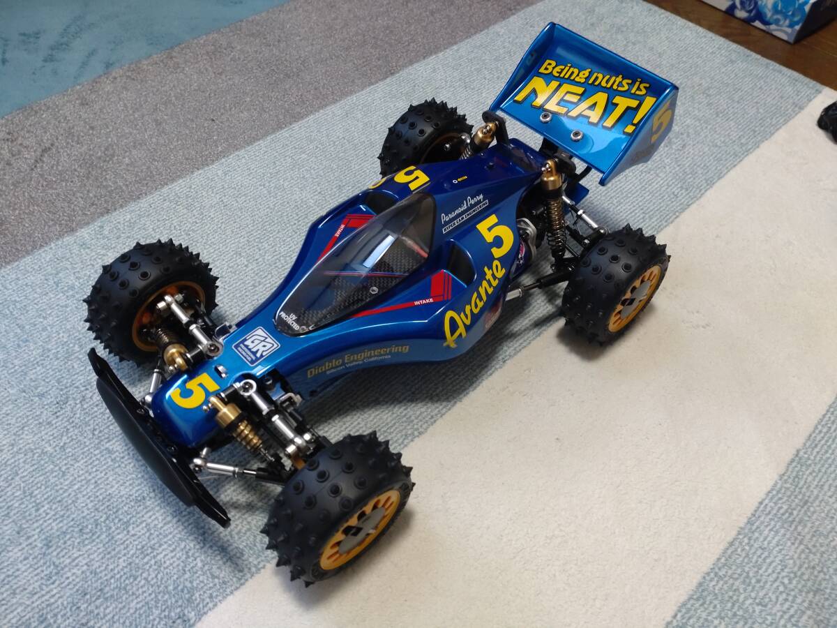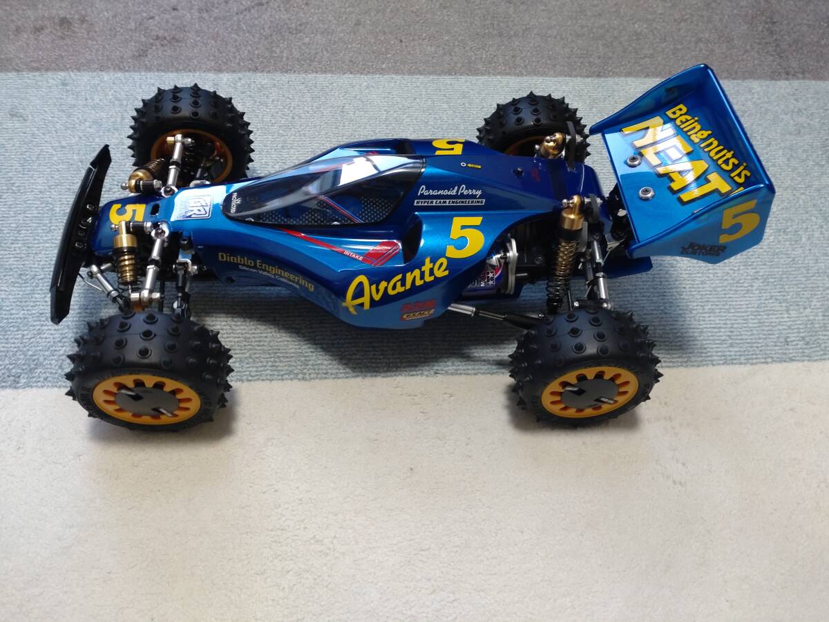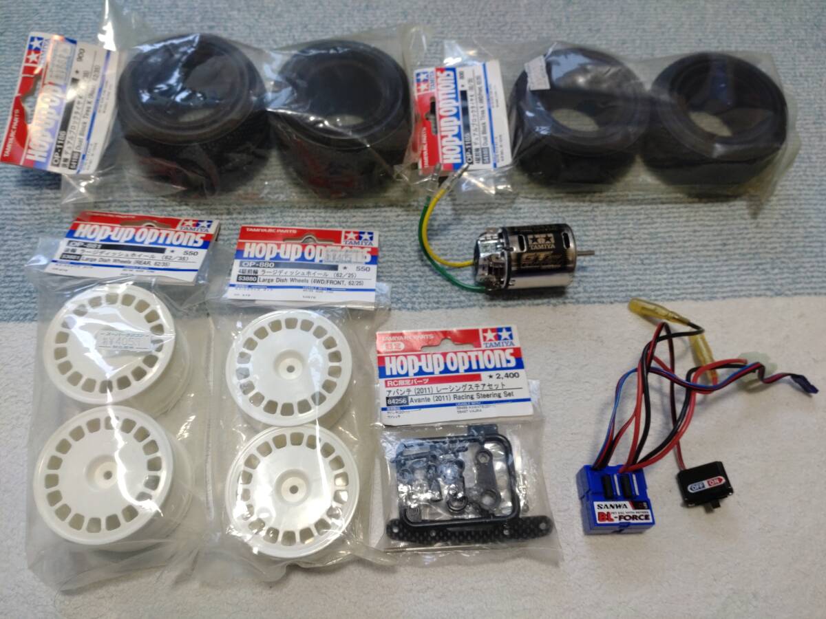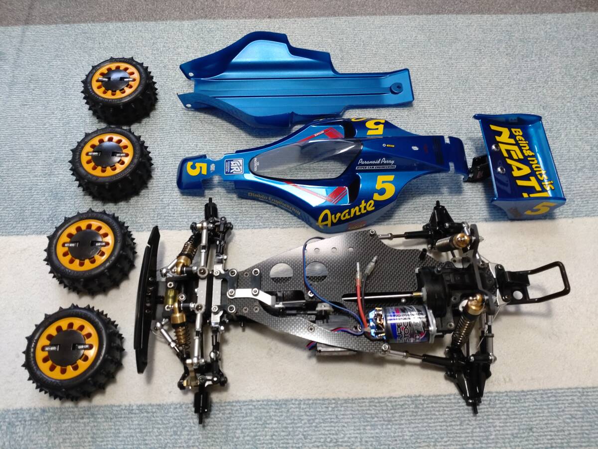 1/10タミヤ アバンテ2011の組立済みです。送料はこちらで負担いたします。走行はしておりません。キットに付属のアバンテ専用モーター(未取付)と、別売りのアバンテレーシングステアセット(限定品 未開封)とタミヤスーパーストックBZモーター(組込み済)サンワ製アンプ(BL-FORCE未取付け)、ステアリングサーボ(組込み済)、タミヤ製ホイール、タイヤセットが付属します。走行させるには、送、受信機とバッテリーが必要となります。初心者には向かないと思います。箱とマニュアル(組立説明書)は付属いたします。
