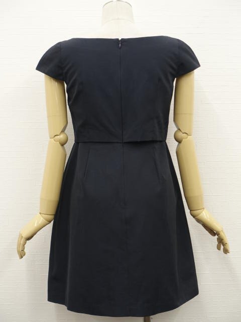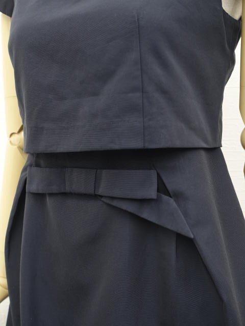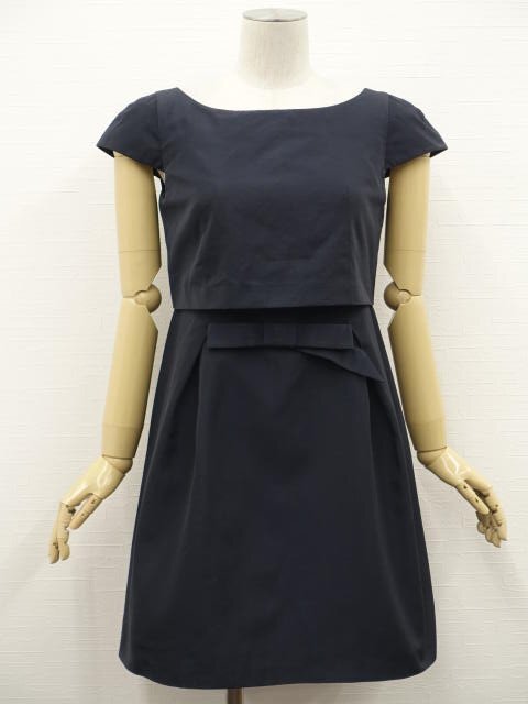 ひざ丈 半袖 ボートネック ワンピース 1 ネイビー系 【メール便可】