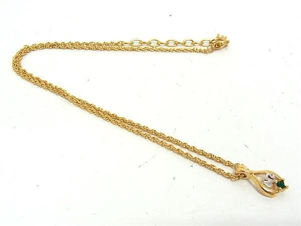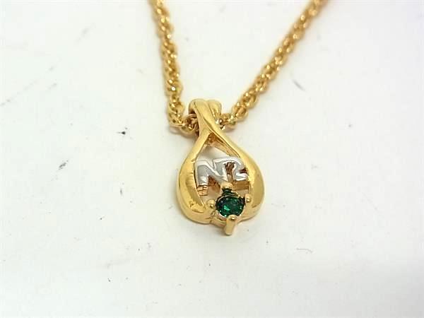 ■新品同様■ NINA RICCI ニナリッチ グリーンラインストーン ネックレス ペンダント アクセサリー レディース ゴールド系 DK1793