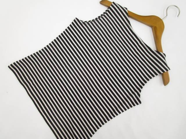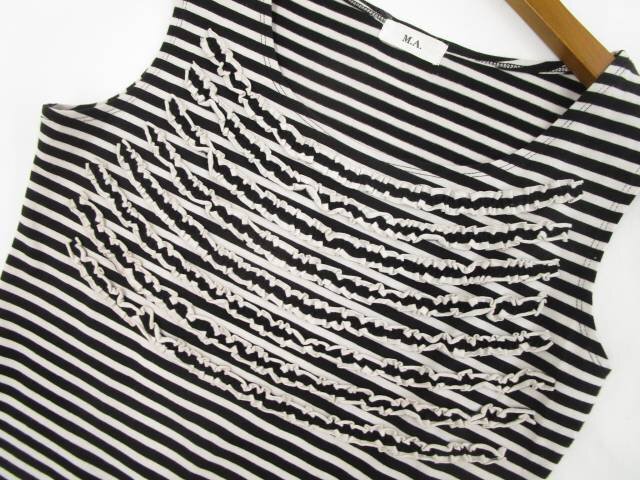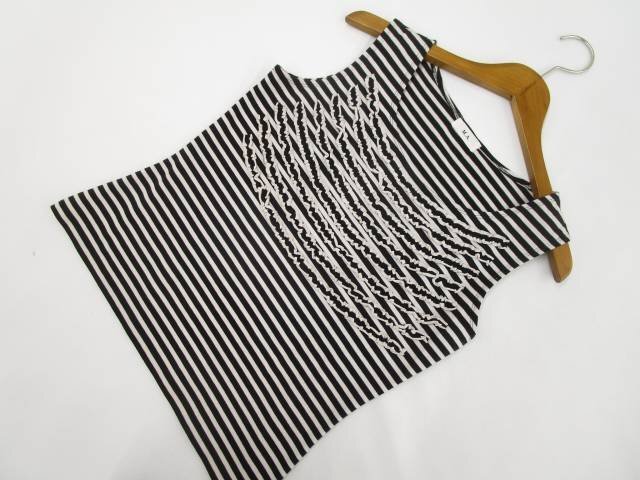 ノースリーブ ラウンドネック カットソー 38 ホワイト×ブラック ボーダー柄 【メール便可】
