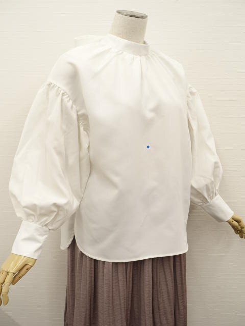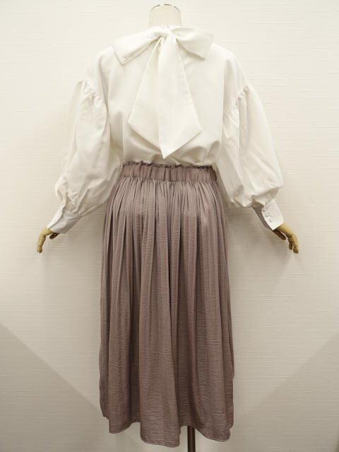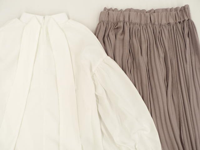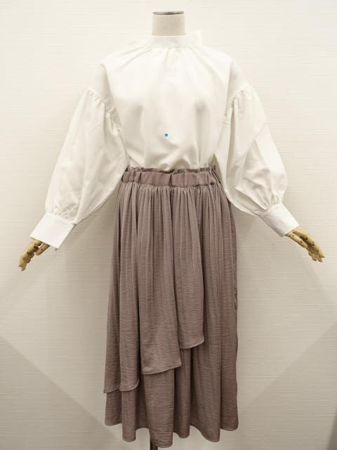 長袖プルオーバーブラウス+ロング丈ラップ風プリーツスカート コーディネート上下2点セット L相当 ホワイト/グレージュ シンプル系 20代・30代~